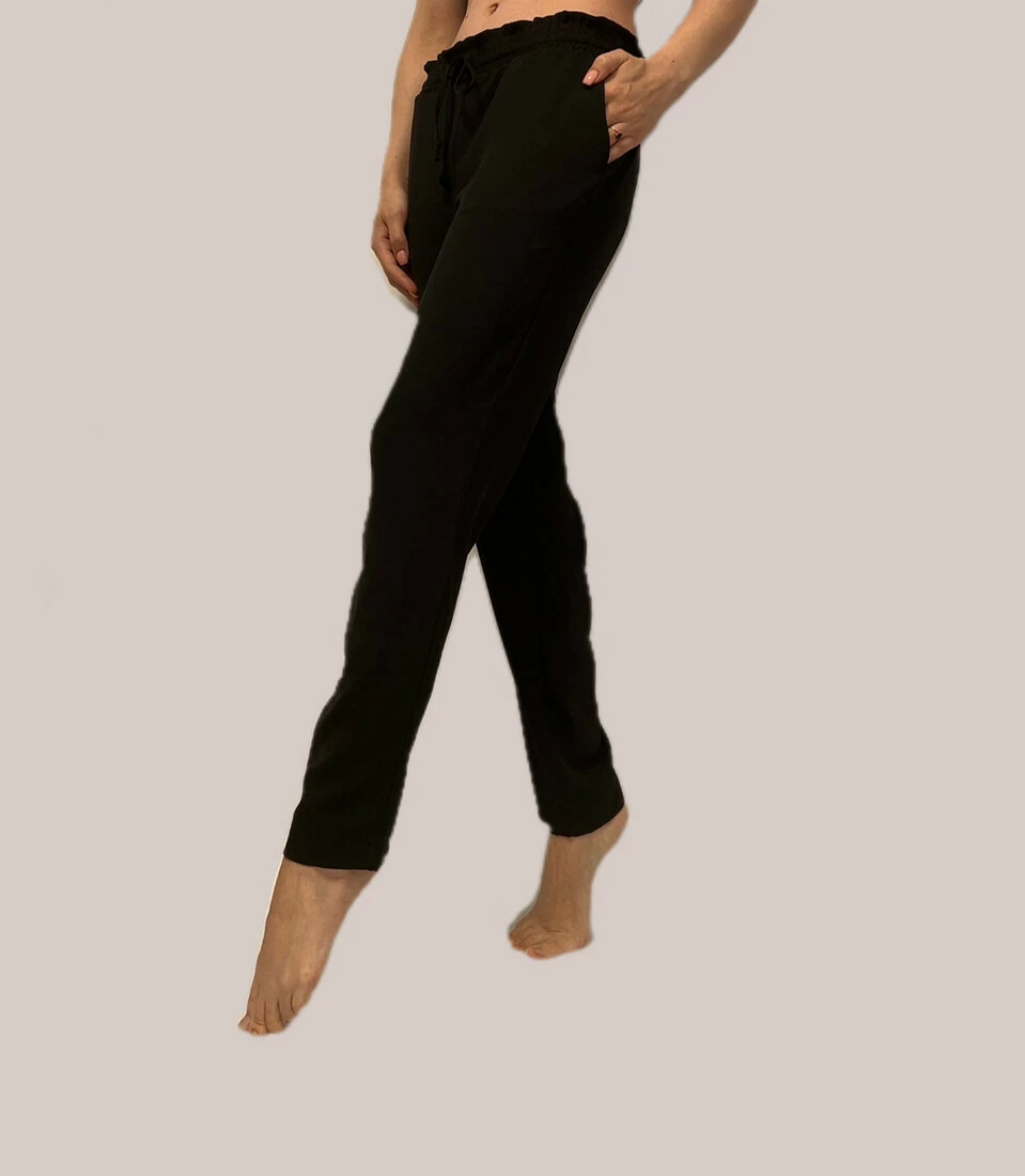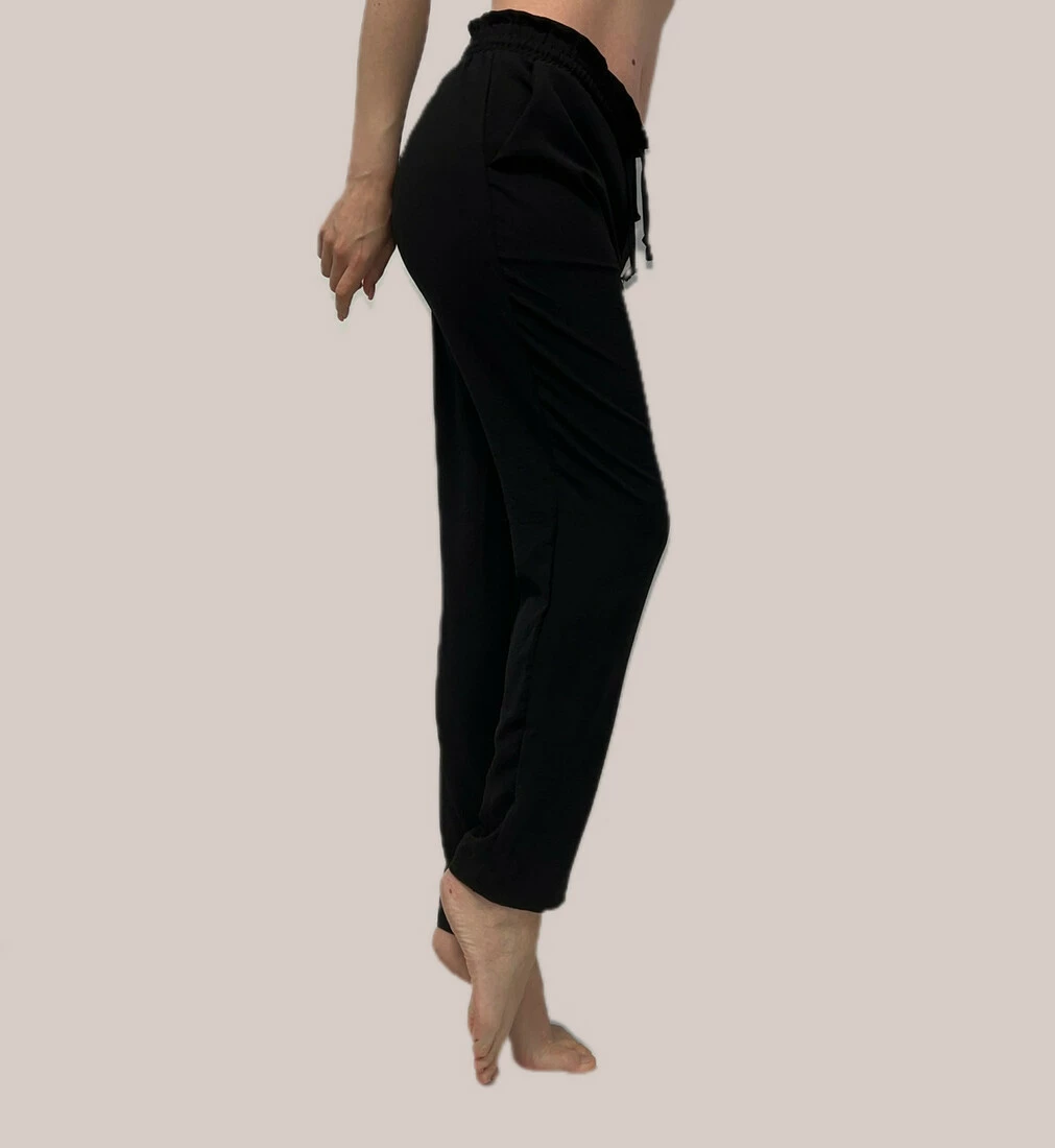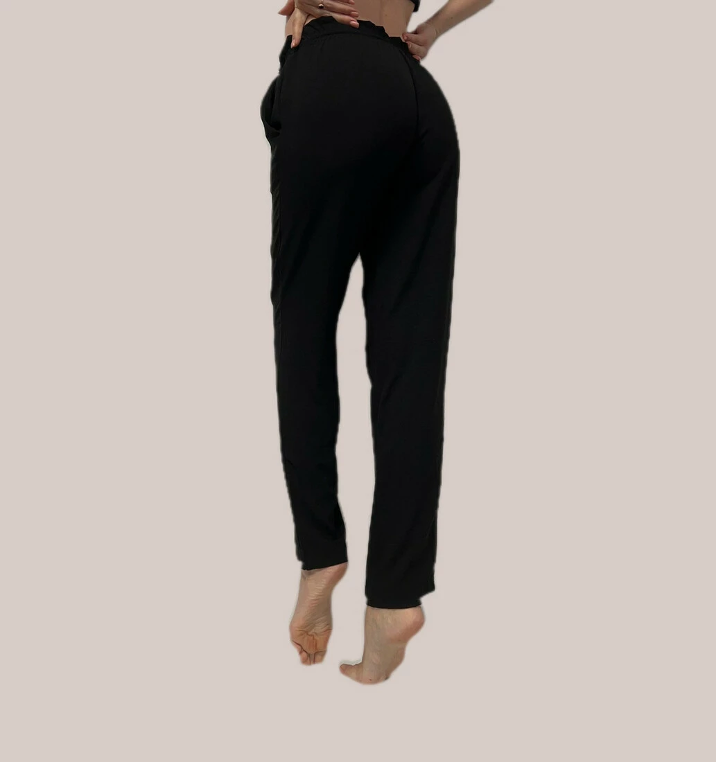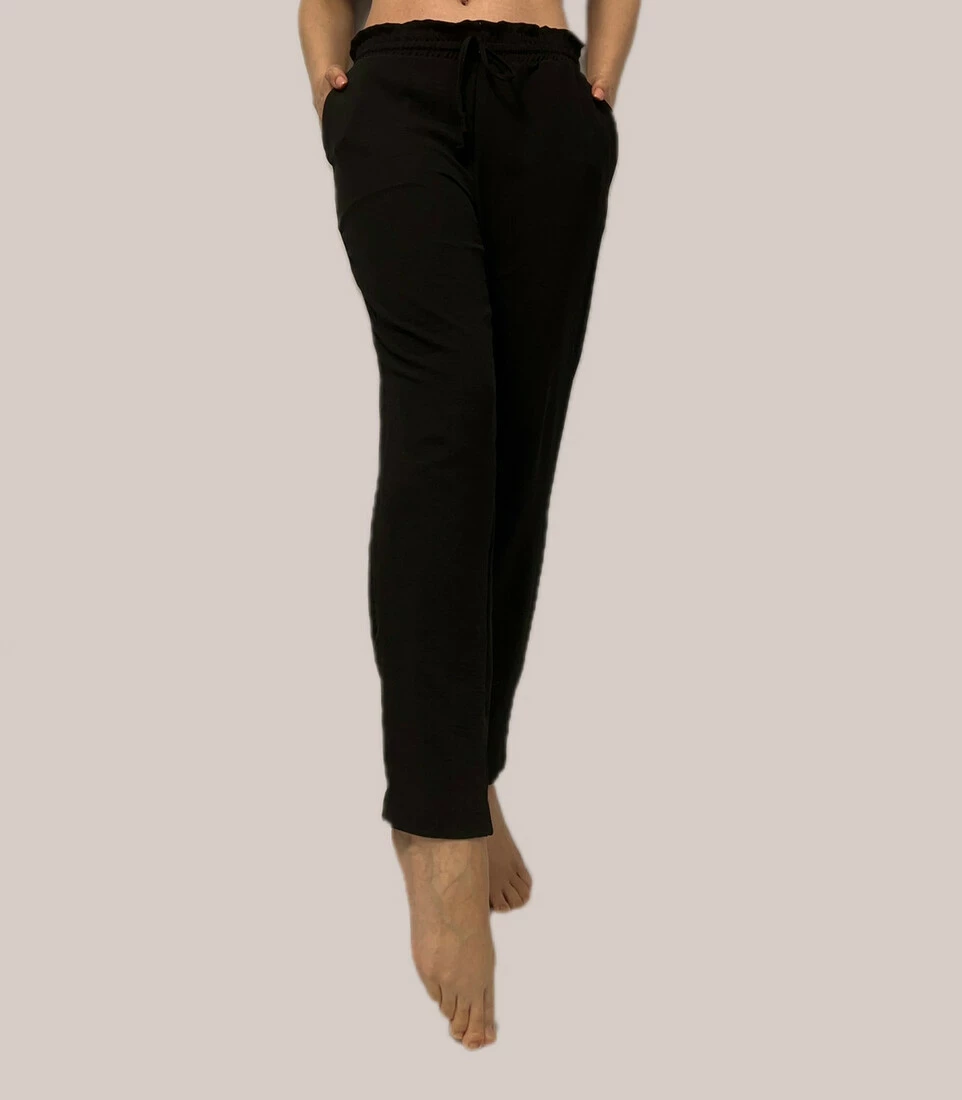 Дана модель брюк ідеально підходить для літнього сезону. Брюки-банани виготовлені з якісної  тканини - американський креп жатка.  Це м'яка, легка та плотна тканина. В цих штанах вам не буде жарко навіть в самий спекотний день.
