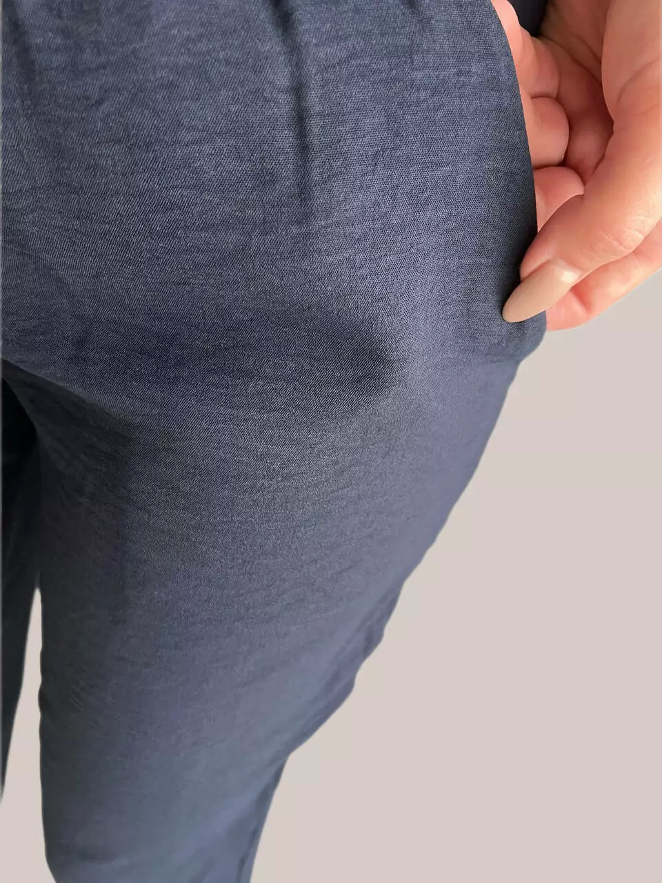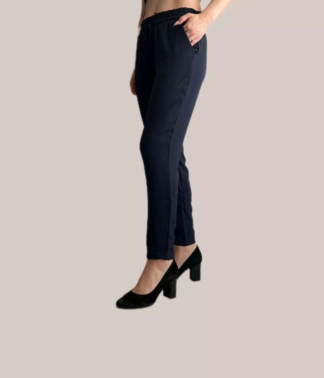Дана модель брюк ідеально підходить для літнього сезону. Брюки-банани виготовлені з якісної  тканини - американський креп жатка.  Це м'яка, легка та плотна тканина. В цих штанах вам не буде жарко навіть в самий спекотний день.