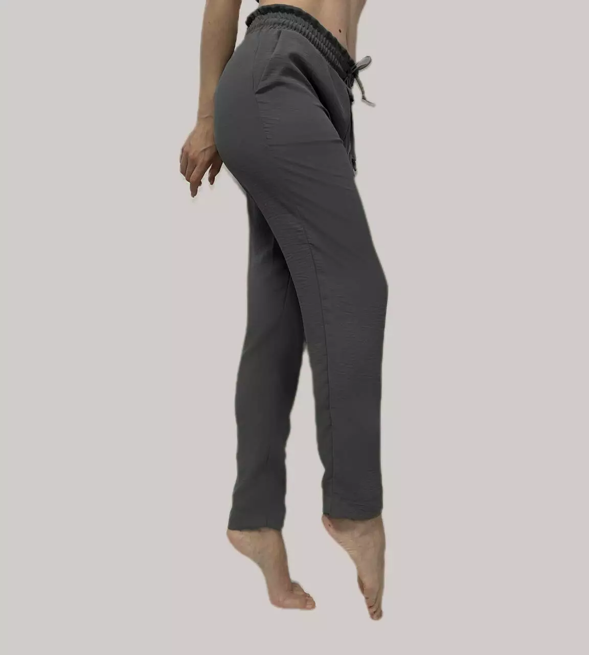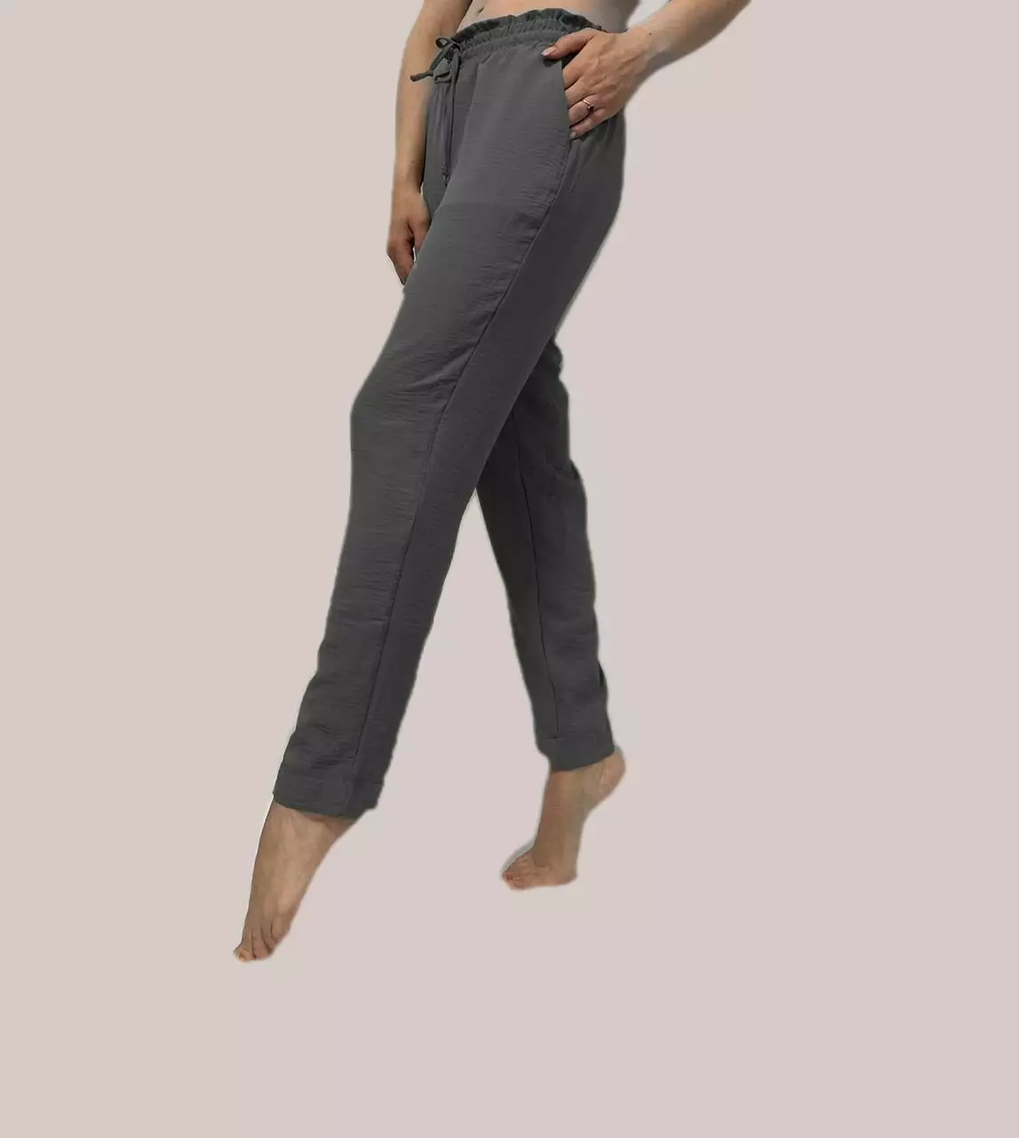 Дана модель брюк ідеально підходить для літнього сезону. Брюки-банани виготовлені з якісної тканини - американський креп жатка. Це м'яка, легка та плотна тканина. В цих штанах вам не буде жарко навіть в самий спекотний день.