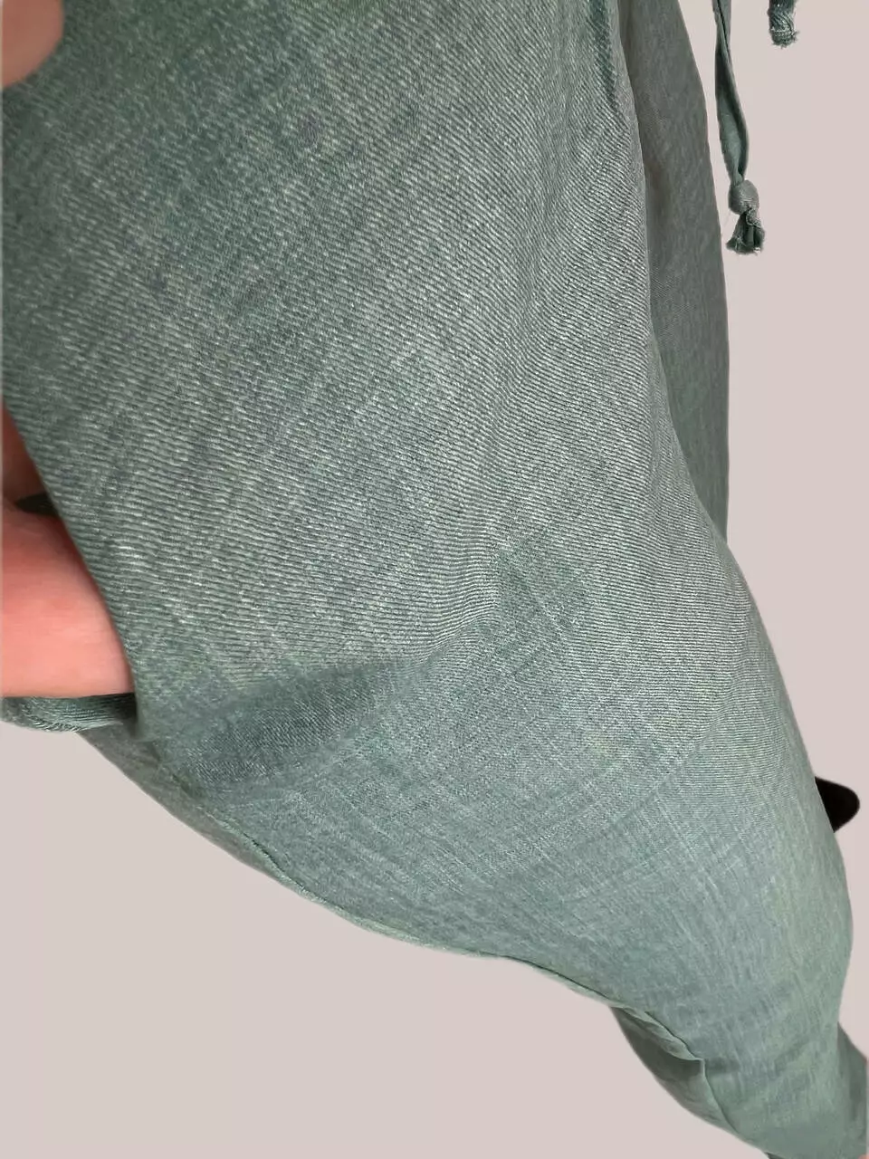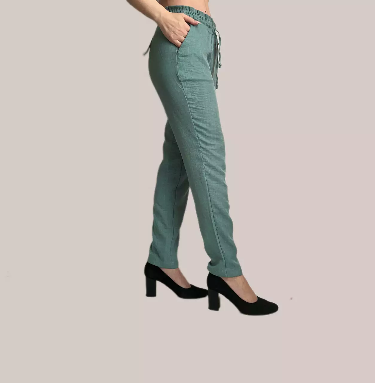 Дана модель брюк ідеально підходить для літнього сезону. Брюки-банани виготовлені з якісної  тканини - льон-коттон .  Це м'яка, легка та плотна тканина. В цих штанах вам не буде жарко навіть в самий спекотний день.