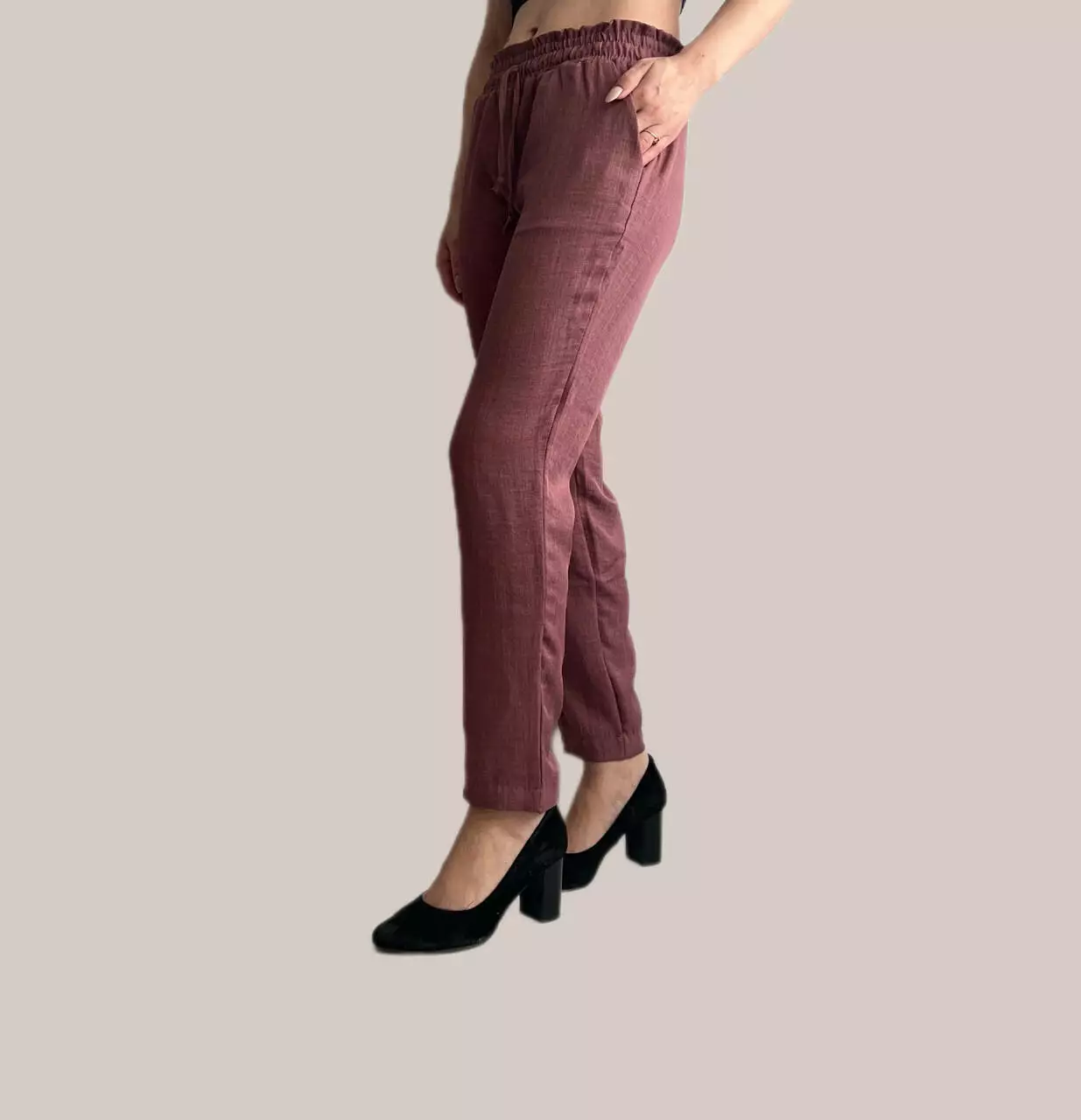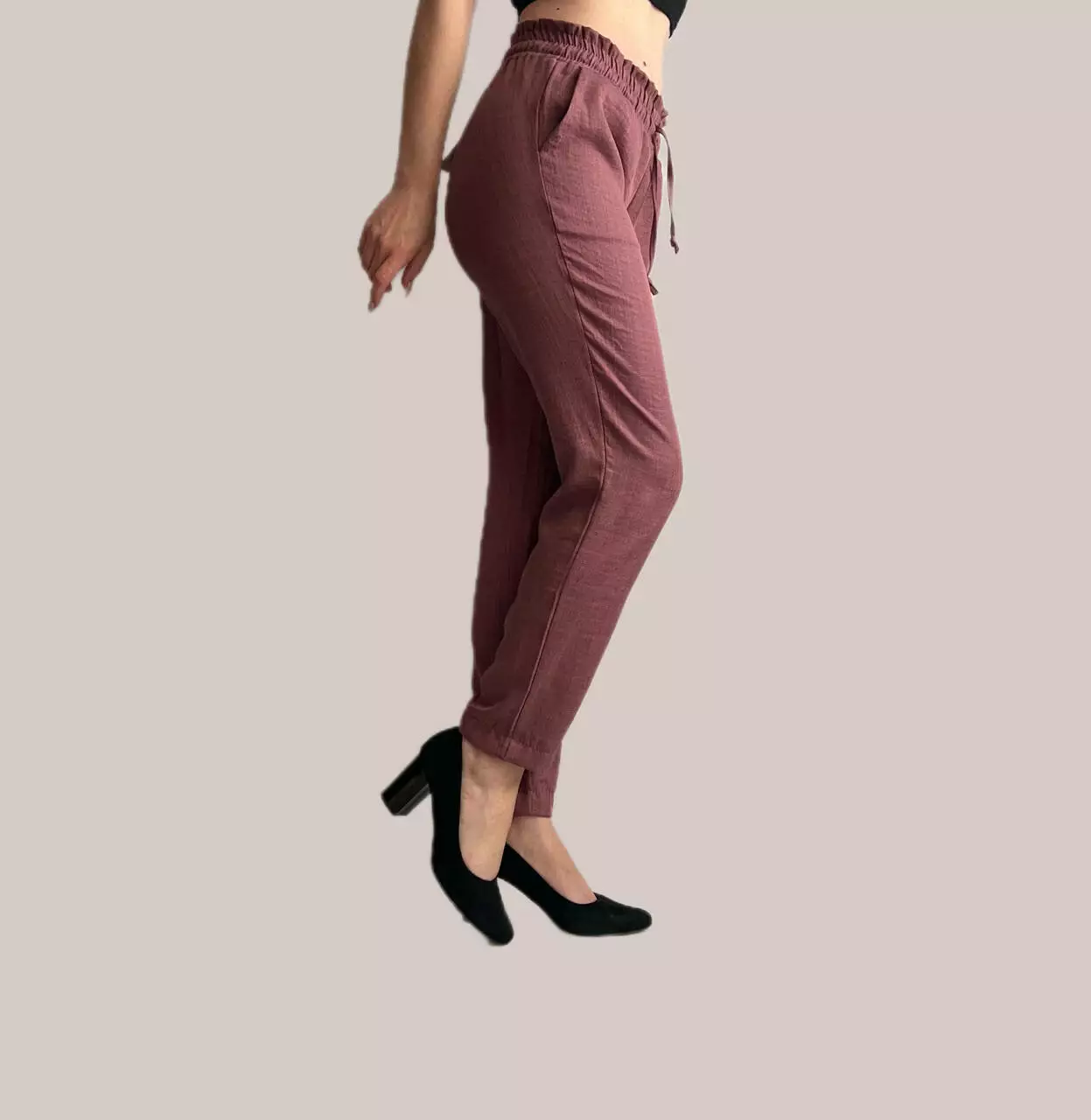Дана модель брюк ідеально підходить для літнього сезону. Брюки-банани виготовлені з якісної  тканини - льон-коттон .  Це м'яка, легка та плотна тканина. В цих штанах вам не буде жарко навіть в самий спекотний день.