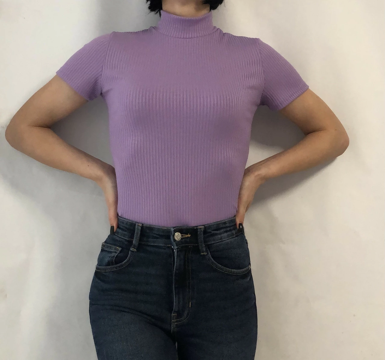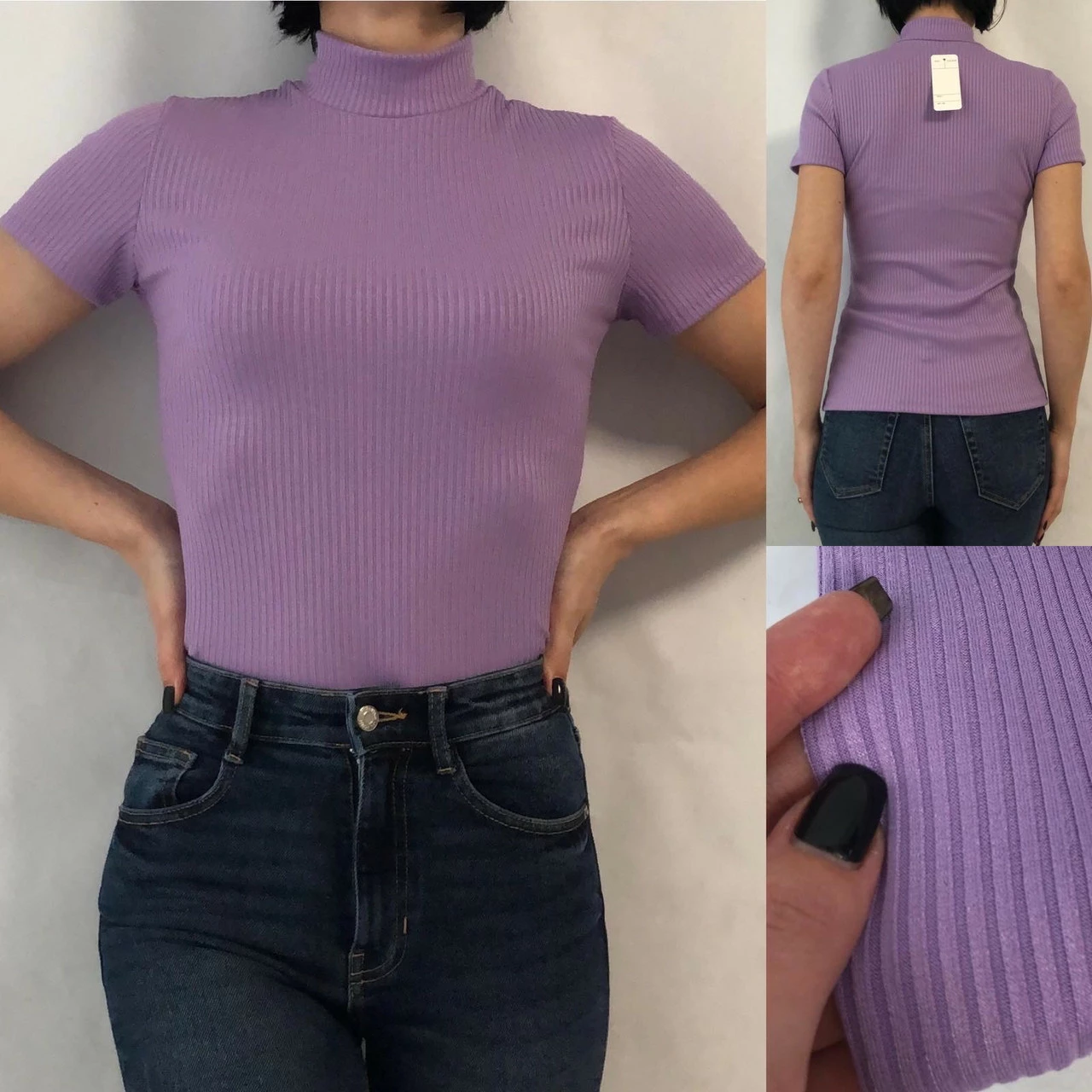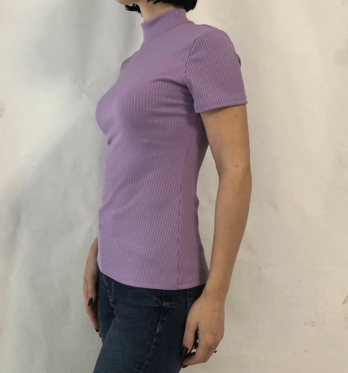 Базовый гольф в рубчик c коротким рукавом мод.№ 201 лаванда
