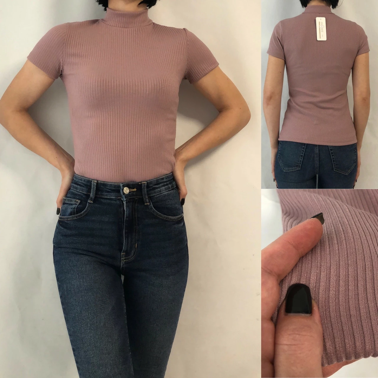 Базовый гольф в рубчик c коротким рукавом мод.№ 201 пыльная роза