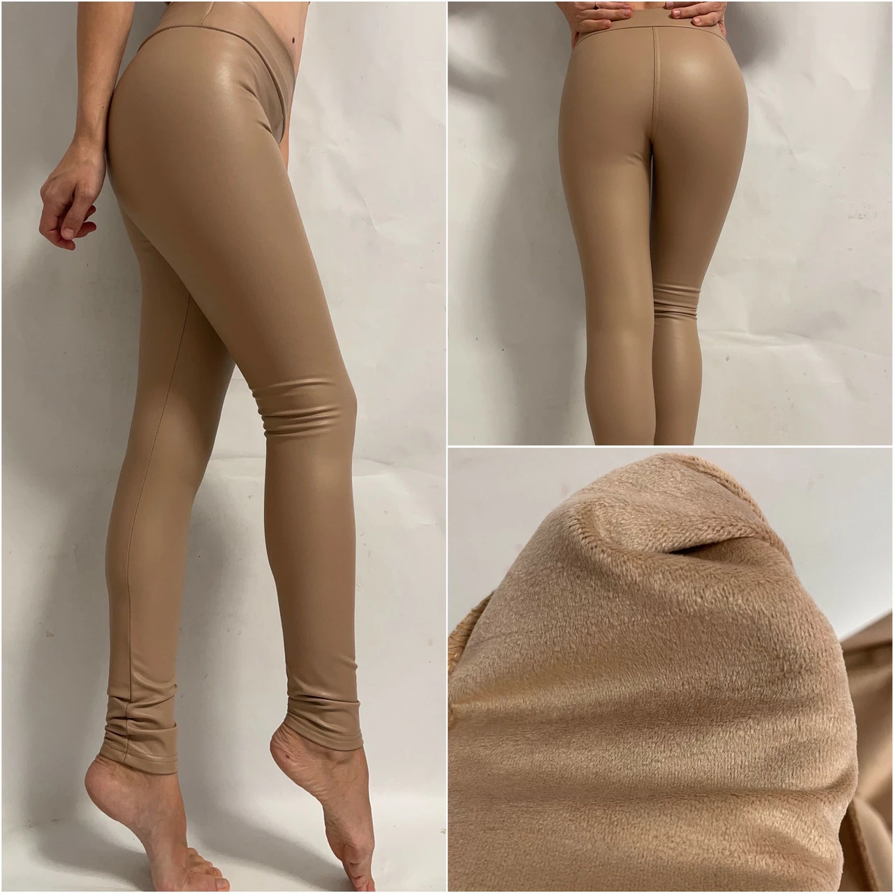 Безшовные женские лосины из эко-кожи НА ВЕЛЮРЕ