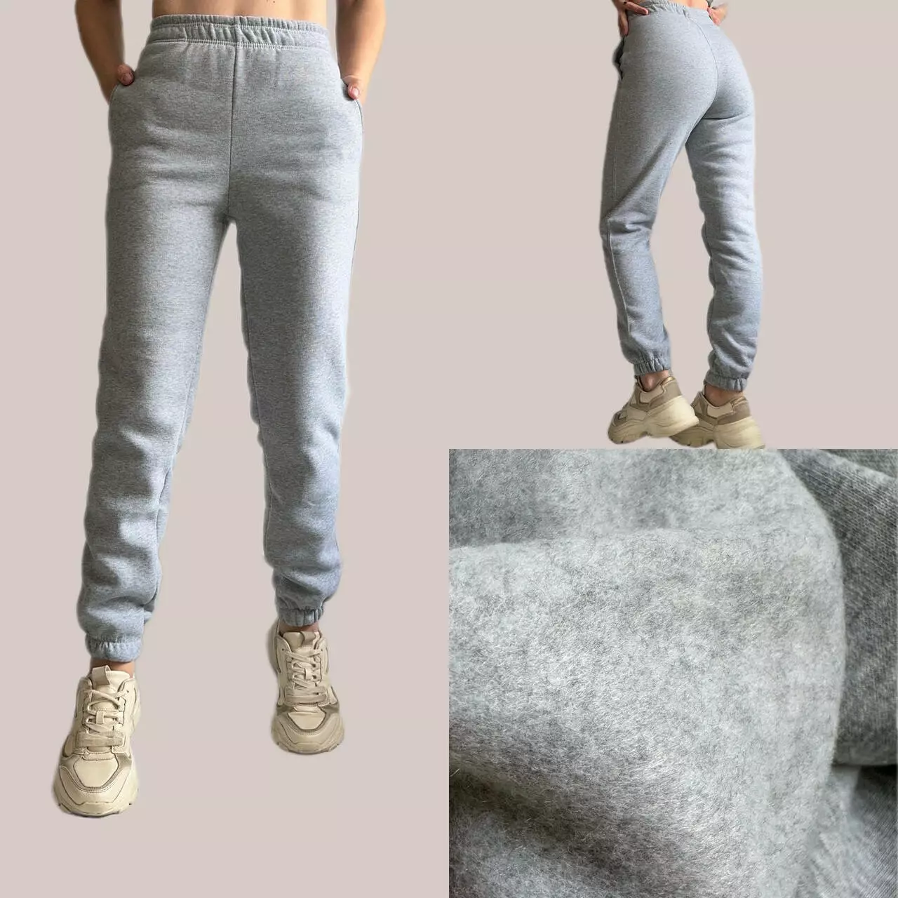 Джоггери з якісної тканини - трьохнитка, утеплені флісом. Ідеально підійдуть для зимового періоду. В цій моделі іде висока посадка, пояс на резинці . Також присутні кармани. Штани дуже зручні і тепленькі.
