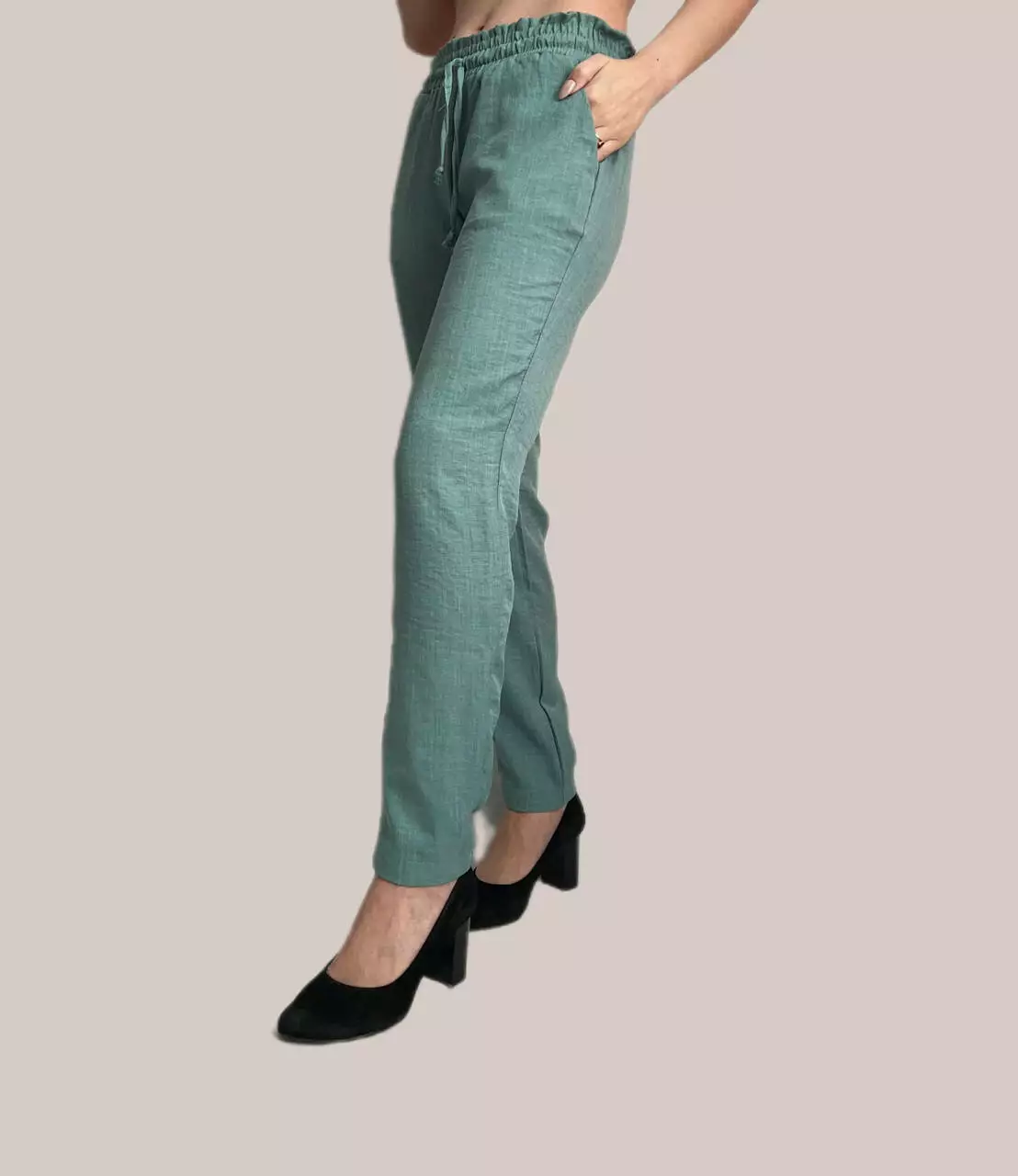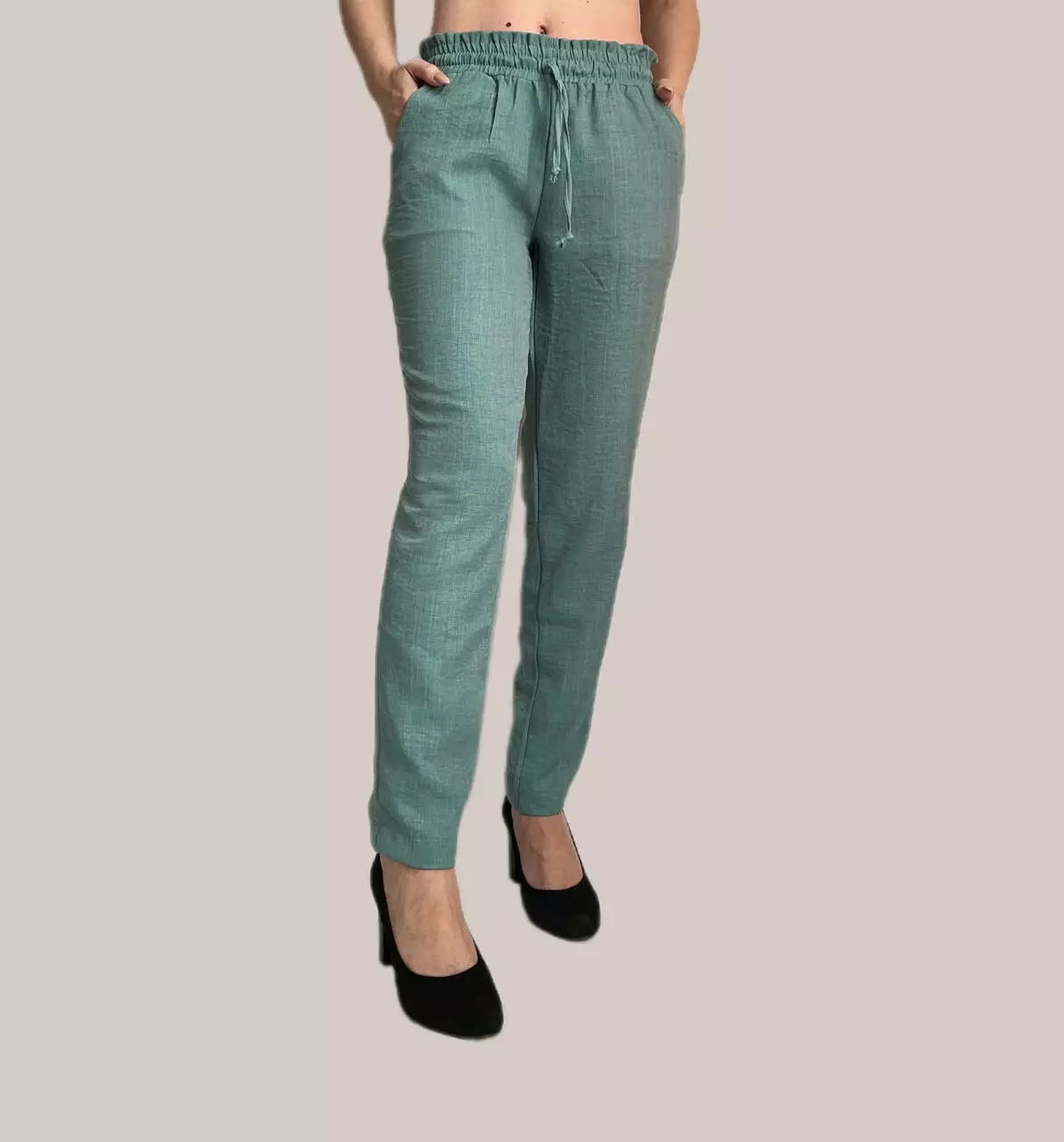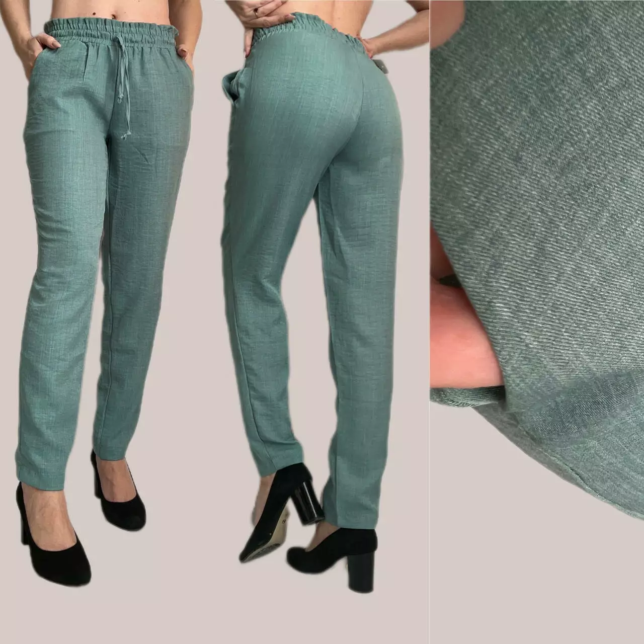 Данна модель брюк  ідеально підходит для літа. Брюки-банани виготовлені з якісної тканини - льон-котон.  Це м'яка, легка та плотна тканина. В цих штанах вам не буде жарко навіть в самый спекотний день.