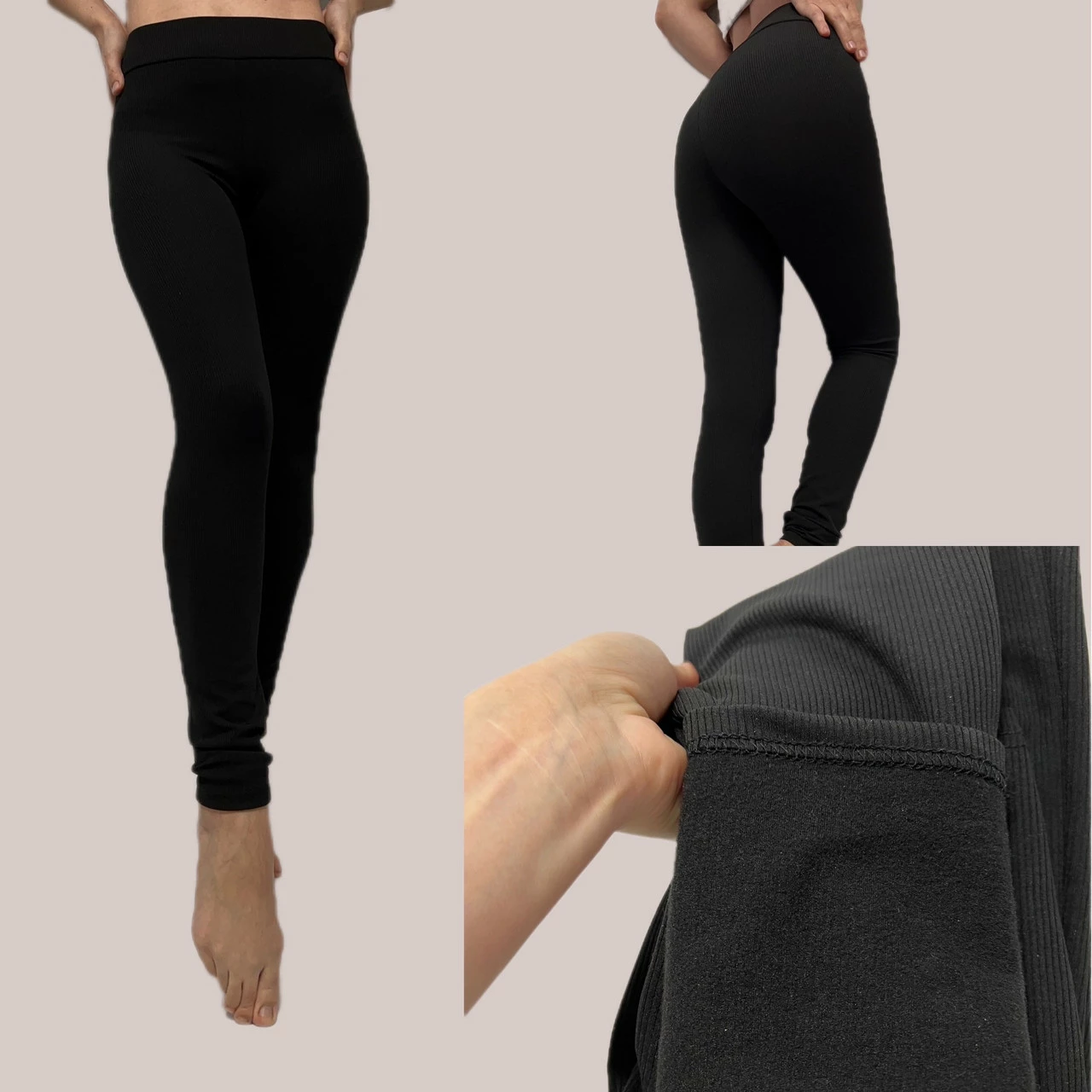 Плюси: ідеально лягають по фігурі, зручні, гарно тягнуться, висока посадка на широкій резинці, тепленькі, не пускають стріл, не кошлатяться, не втрачають форму після прання.