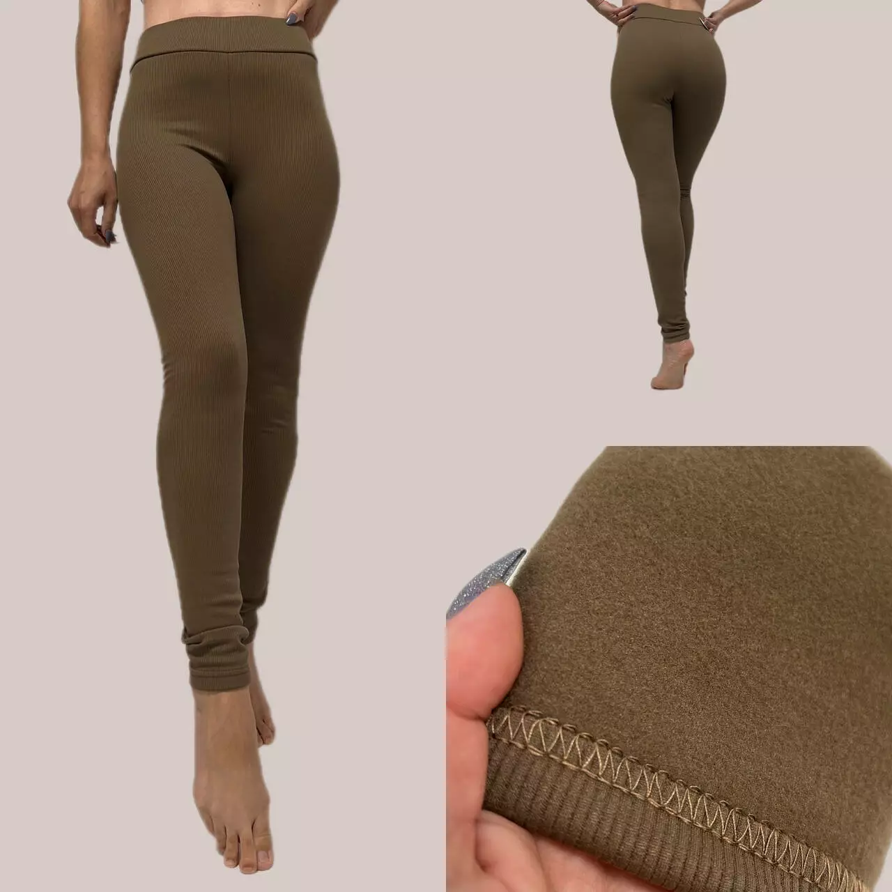 Плюси: ідеально лягають по фігурі, зручні, гарно тягнуться, висока посадка на широкій резинці, тепленькі, не пускають стріл, не кошлатяться, не втрачають форму після прання.