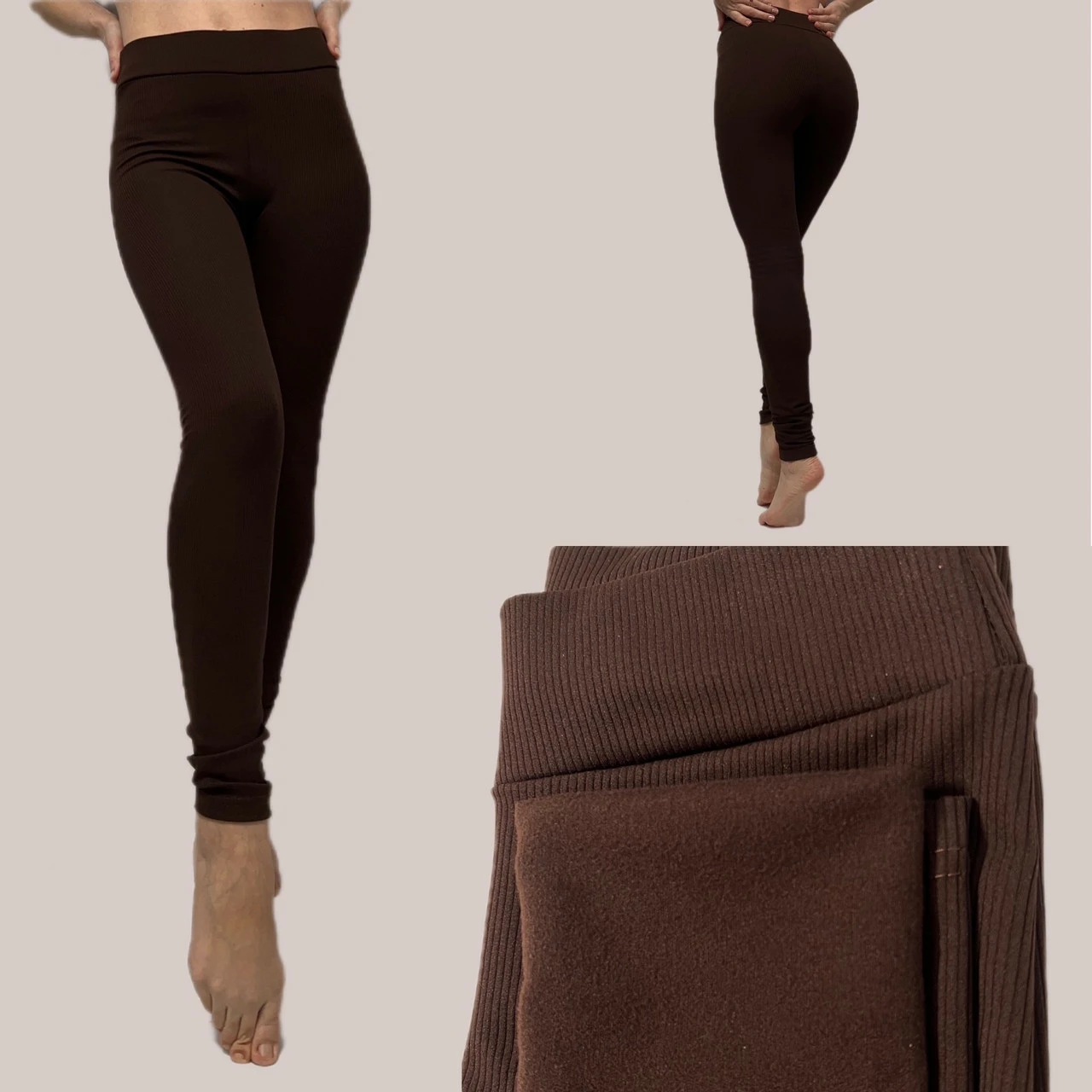 Плюси: ідеально лягають по фігурі, зручні, гарно тягнуться, висока посадка на широкій резинці, тепленькі, не пускають стріл, не кошлатяться, не втрачають форму після прання.