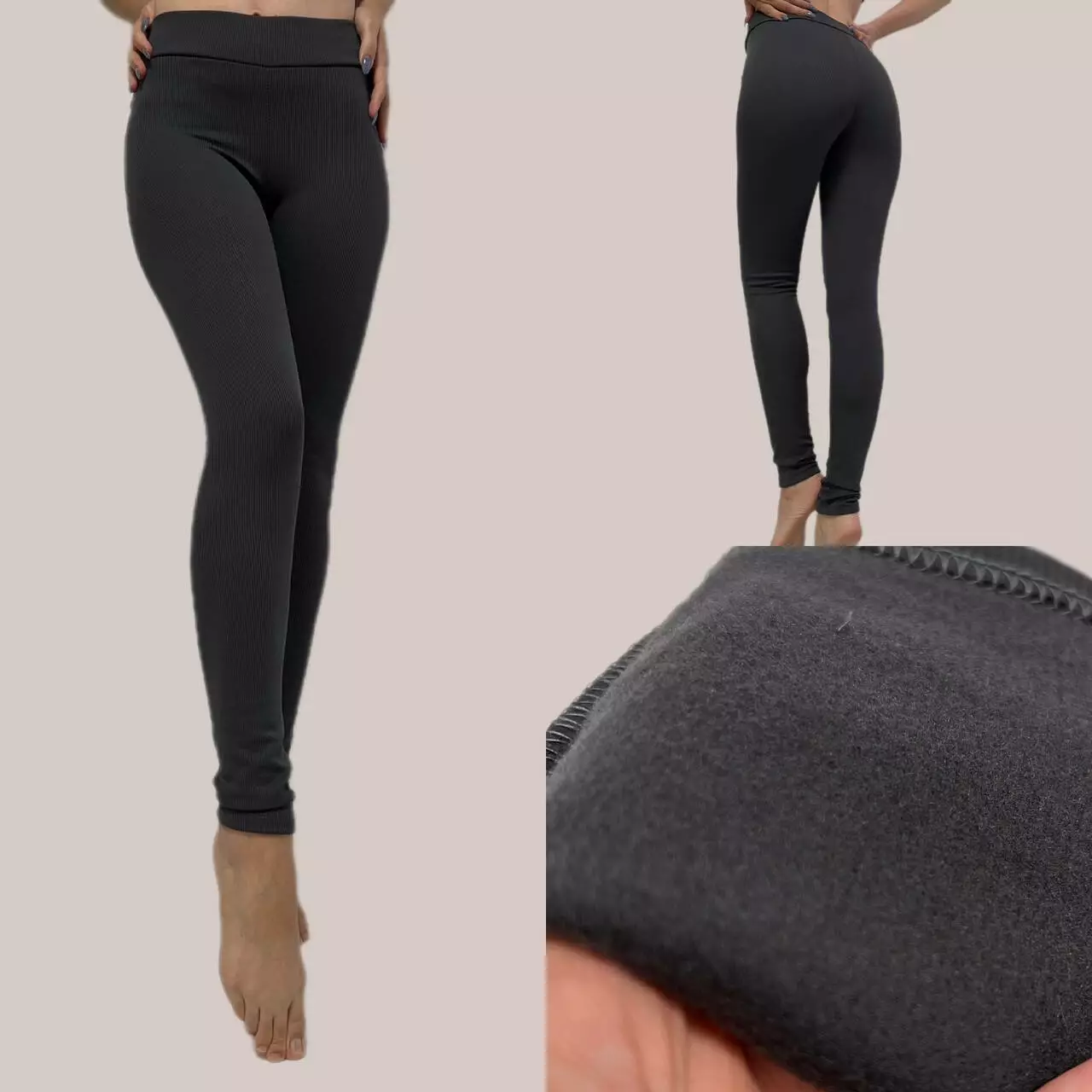 Плюси: ідеально лягають по фігурі, зручні, гарно тягнуться, висока посадка на широкій резинці, тепленькі, не пускають стріл, не кошлатяться, не втрачають форму після прання.