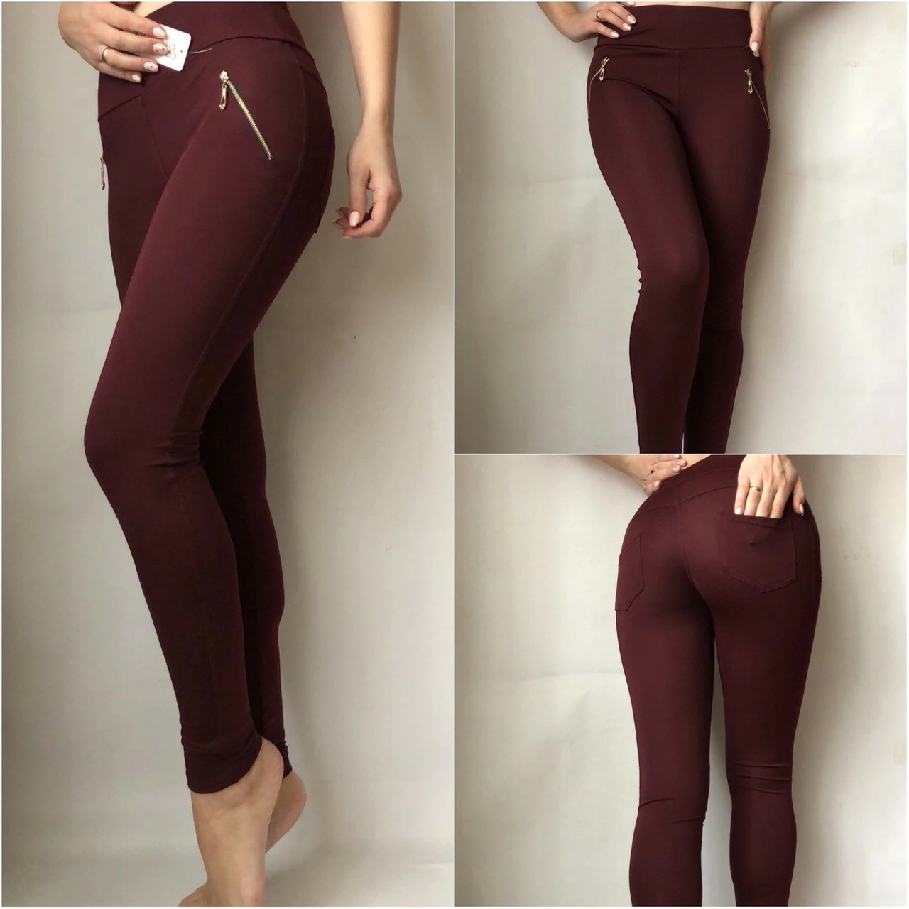 Черные женские лосины в классическом стиле – лучший вариант для осеннего-зимнего периода. Данные лосины имеют среднюю посадку на широком, эластичном и мягком поясе, что обеспечивает комфортную посадку. Эта модель изготовлена из высококачественных материалов. Лосины отлично садятся по фигуре, плотно облегают ноги, не сковывают движений и хорошо тянутся. Поэтому они прослужат вам очень долго. Фурнитура в качестве замочков на карманах придает нарядности, соответственно их можно носить как брюки с укороченным верхом.