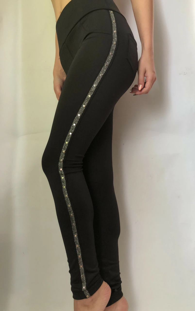 Модные, красивые и удобные леггинсы с вставками и эмблемой на заднем кармане тренд 2017г. - 2018г.