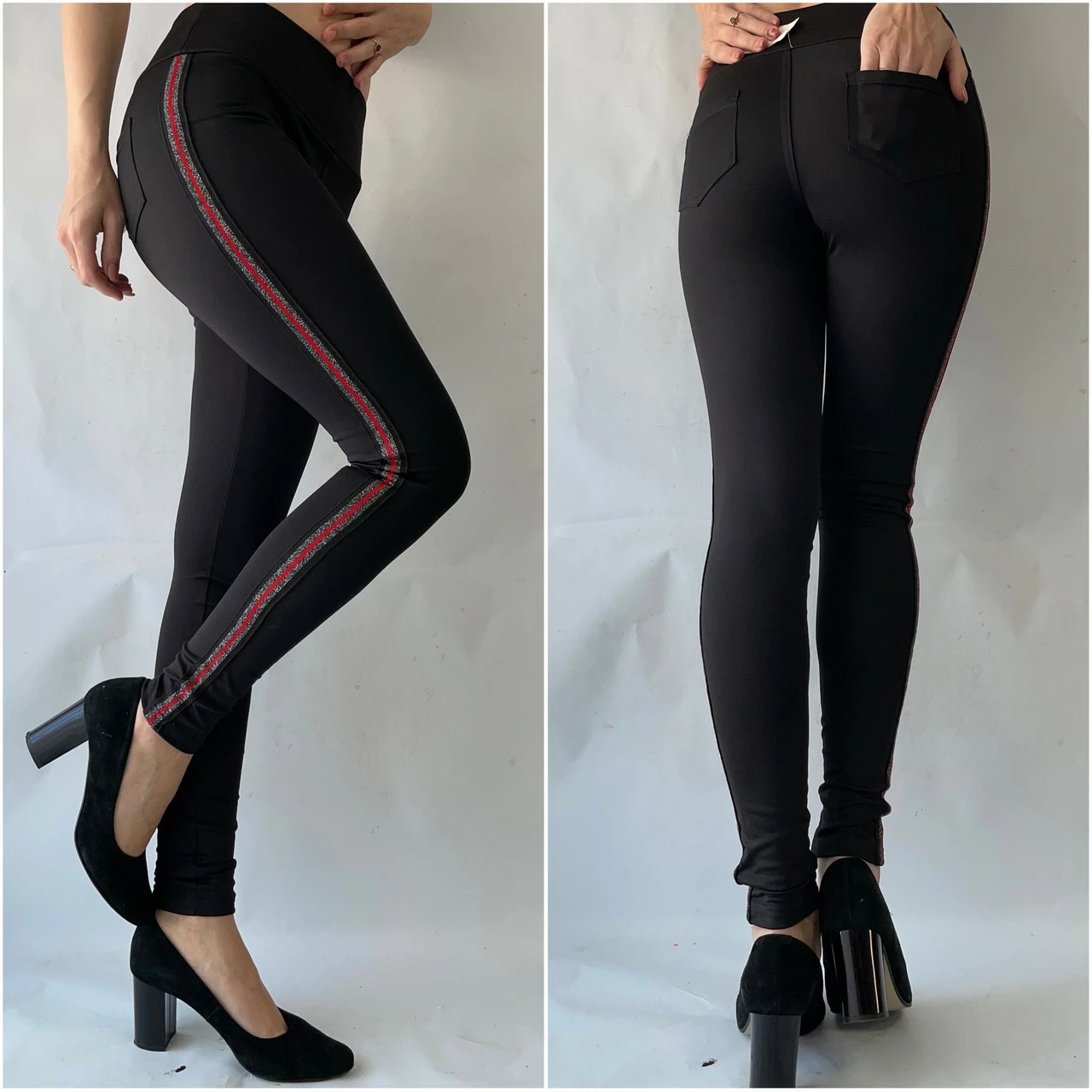 Модные, красивые и удобные леггинсы с вставками и эмблемой на заднем кармане тренд 2017г. - 2018г.
