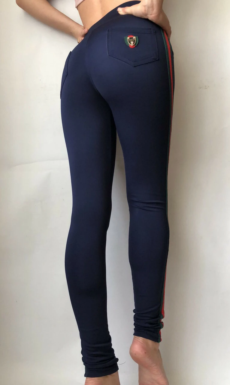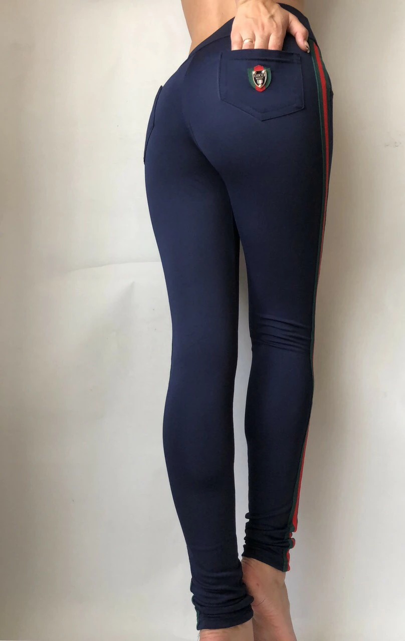 Модные, красивые и удобные леггинсы с вставками и эмблемой на заднем кармане тренд 2017г. - 2018г.