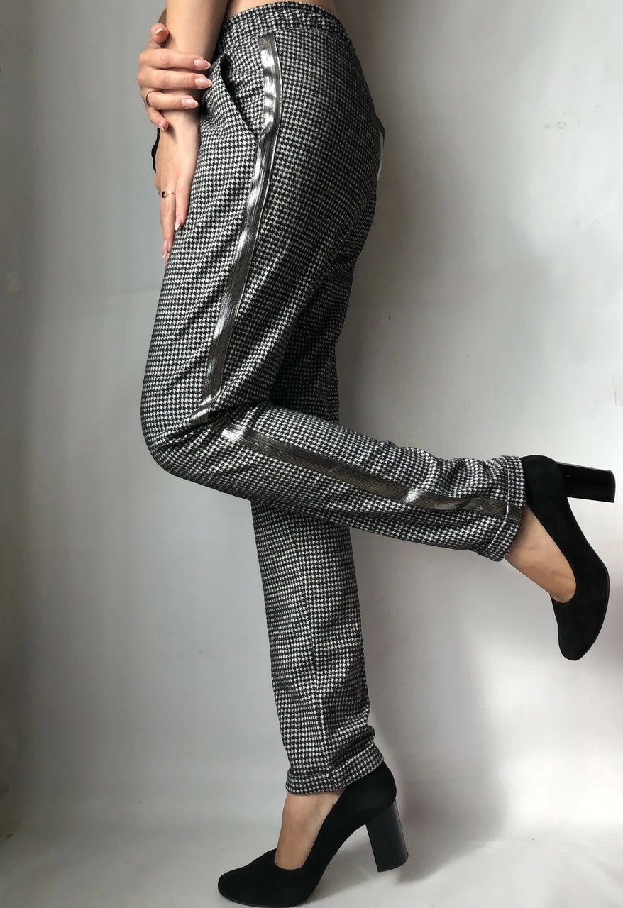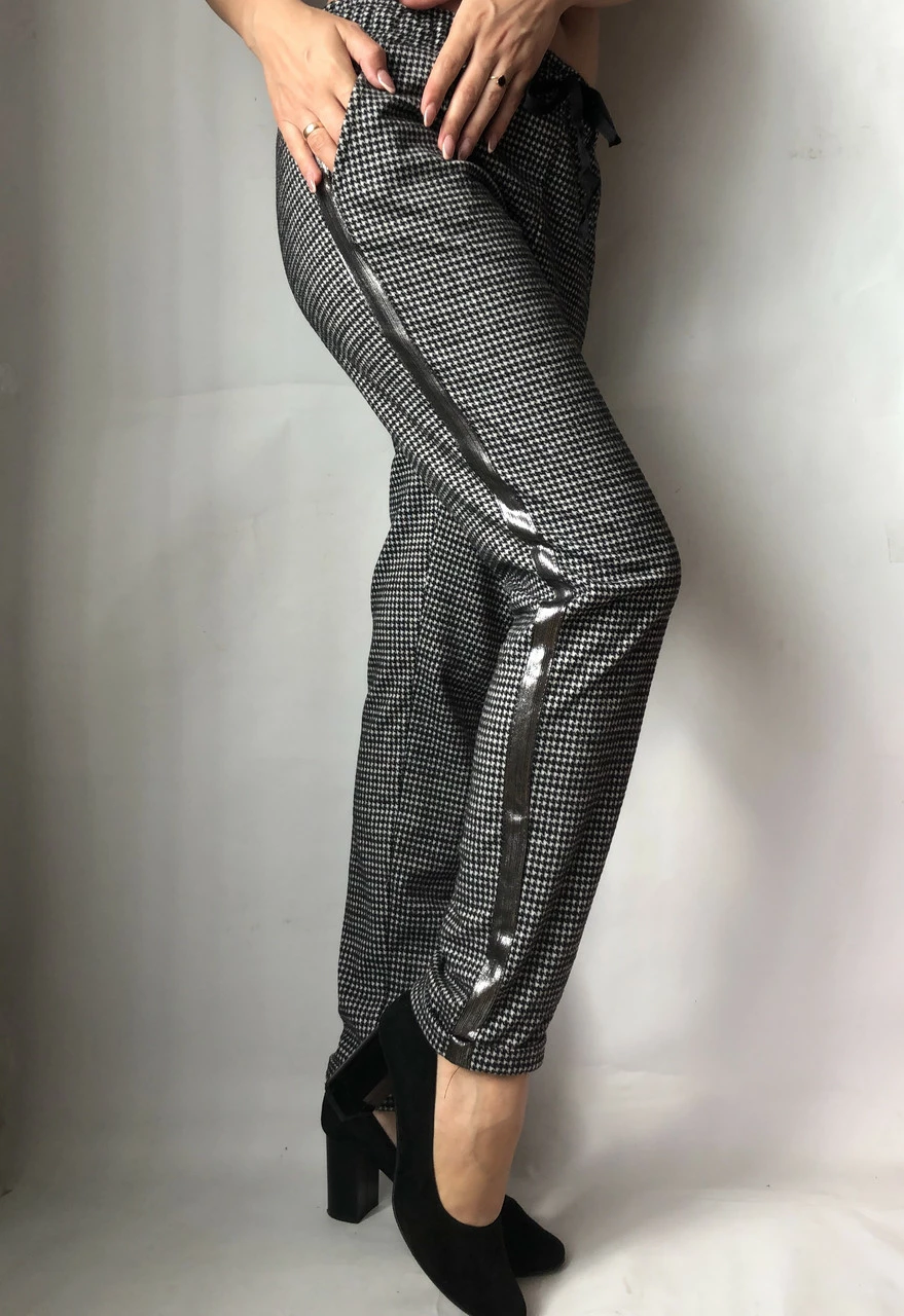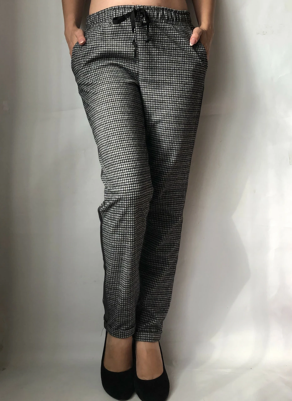 Осенние женские брюки выполнены из качественной ткани "тиар" на резинке + полноценный шнурок. Хорошо ложатся. Присудствуют карманы.
