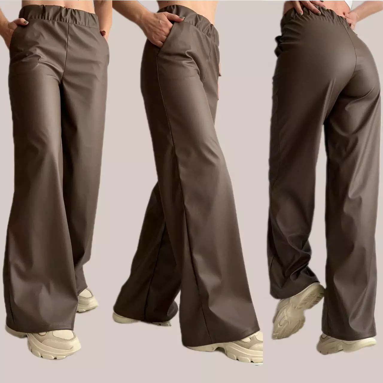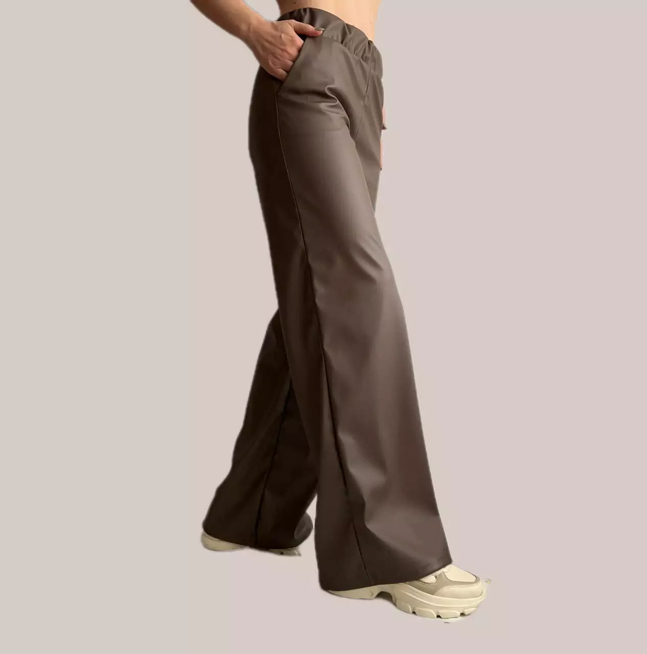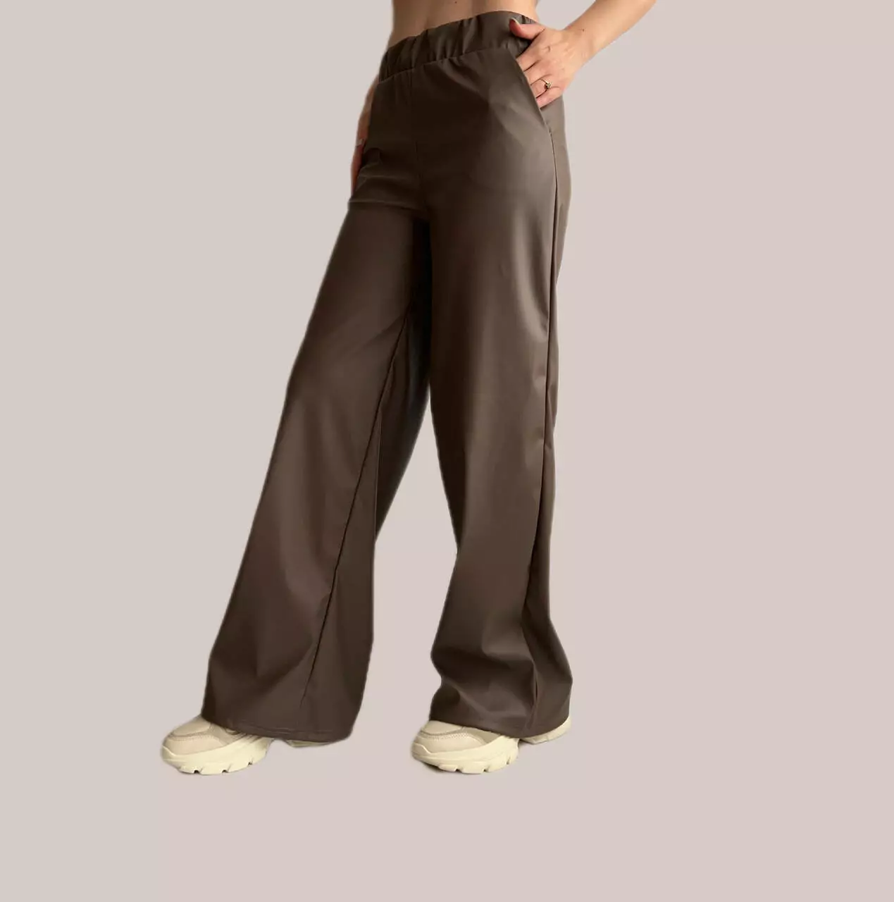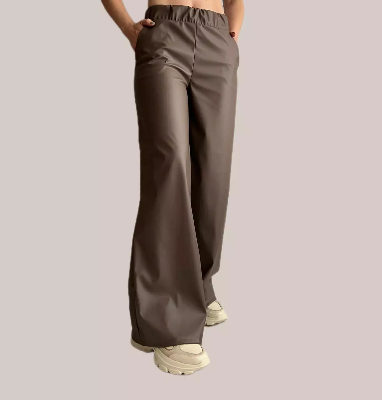 Широкі штани з екошкіри