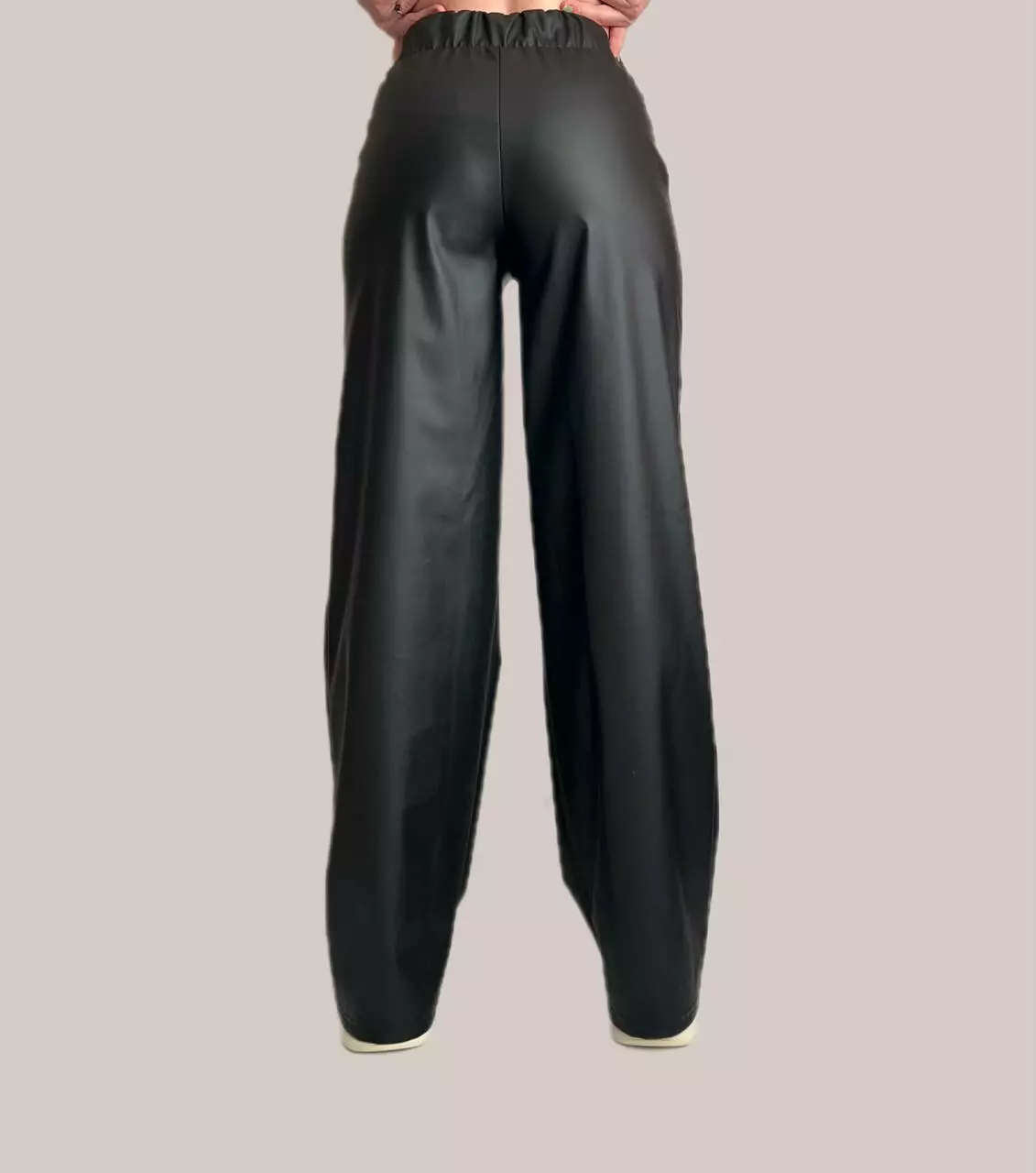 Широкі жіночі штани з екошкіри мод. 94 чорні