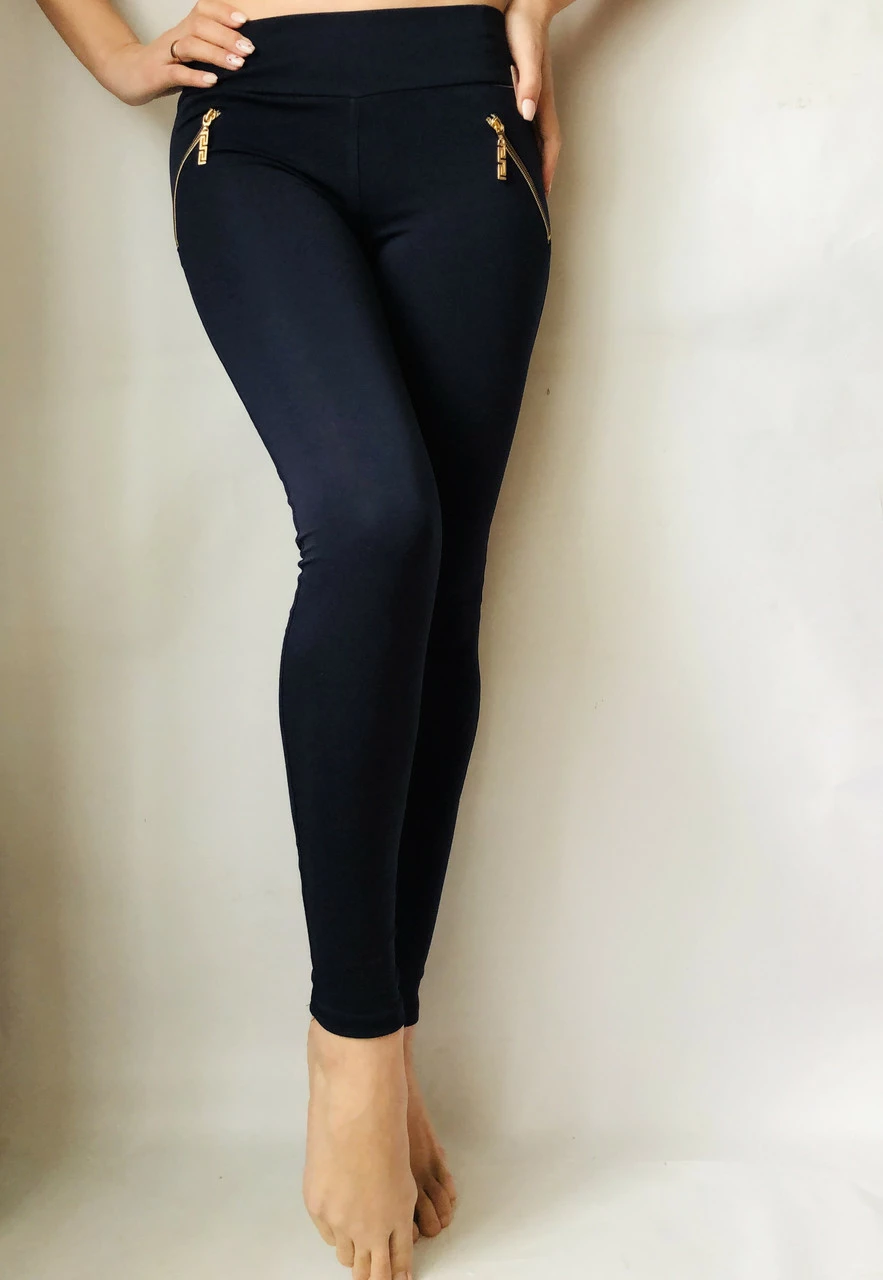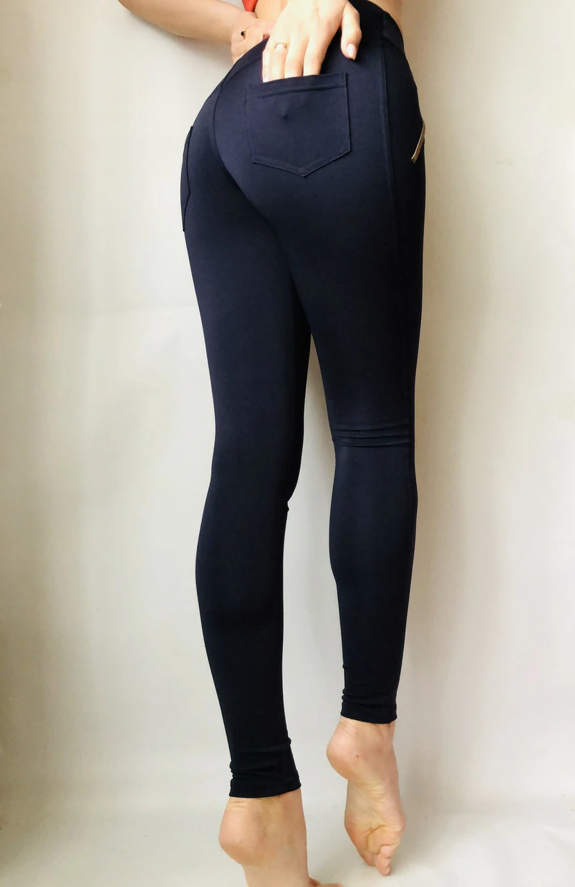 Фурнитура в качестве замочков на карманах придает нарядности, соответственно их можно носить как брюки с укороченным верхом. Лосины отлично садятся по фигуре, плотно облегают ноги, не сковывают движений и хорошо тянутся.
