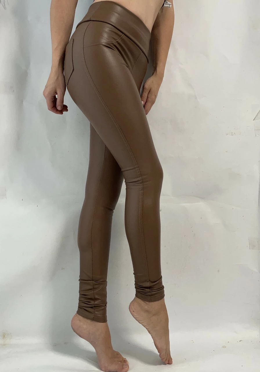 ТЕПЛЫЕ лосины из эко-кожи №085 коричневый (батал)