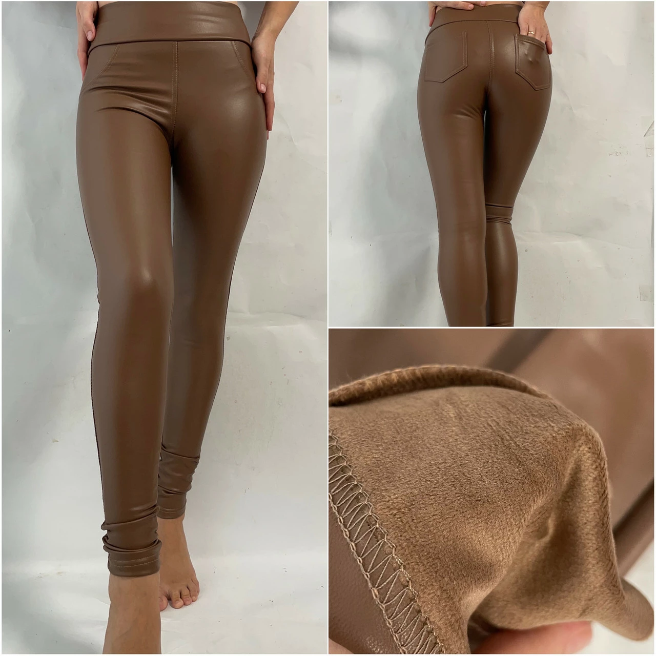 ТЕПЛЫЕ лосины из эко-кожи №085 коричневый (батал)