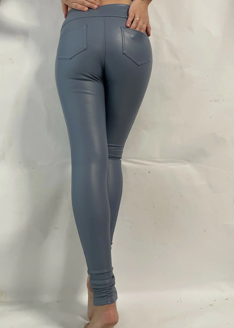 ТЕПЛЫЕ лосины из эко-кожи №085 серо-голубой