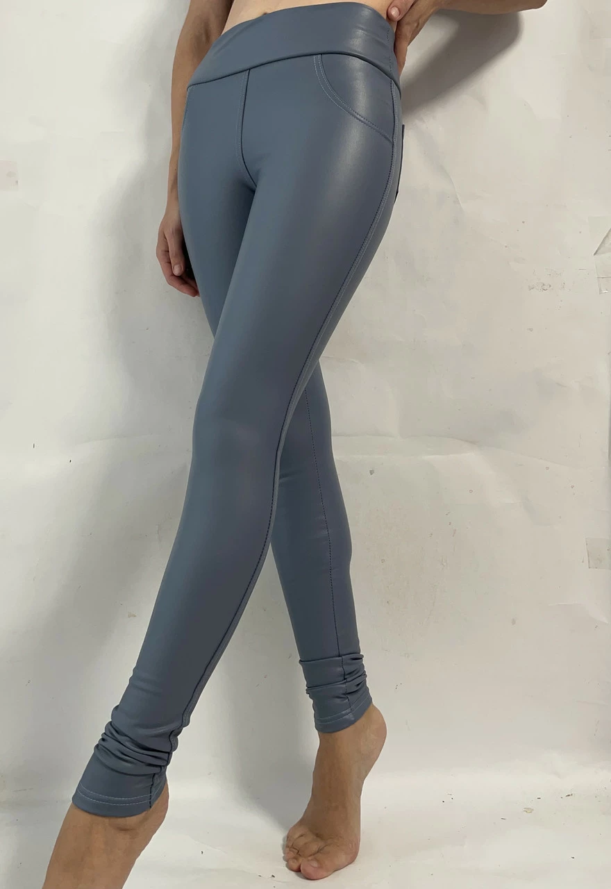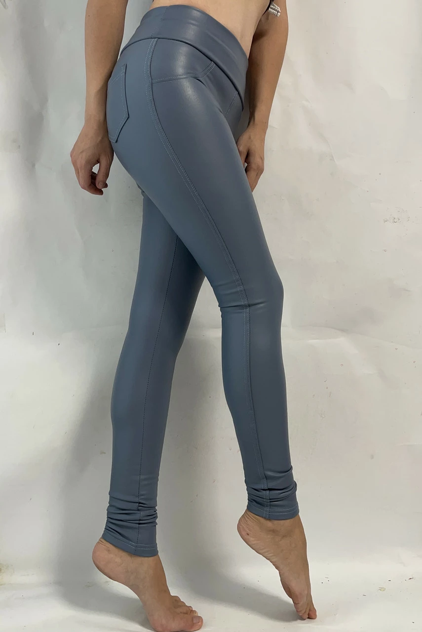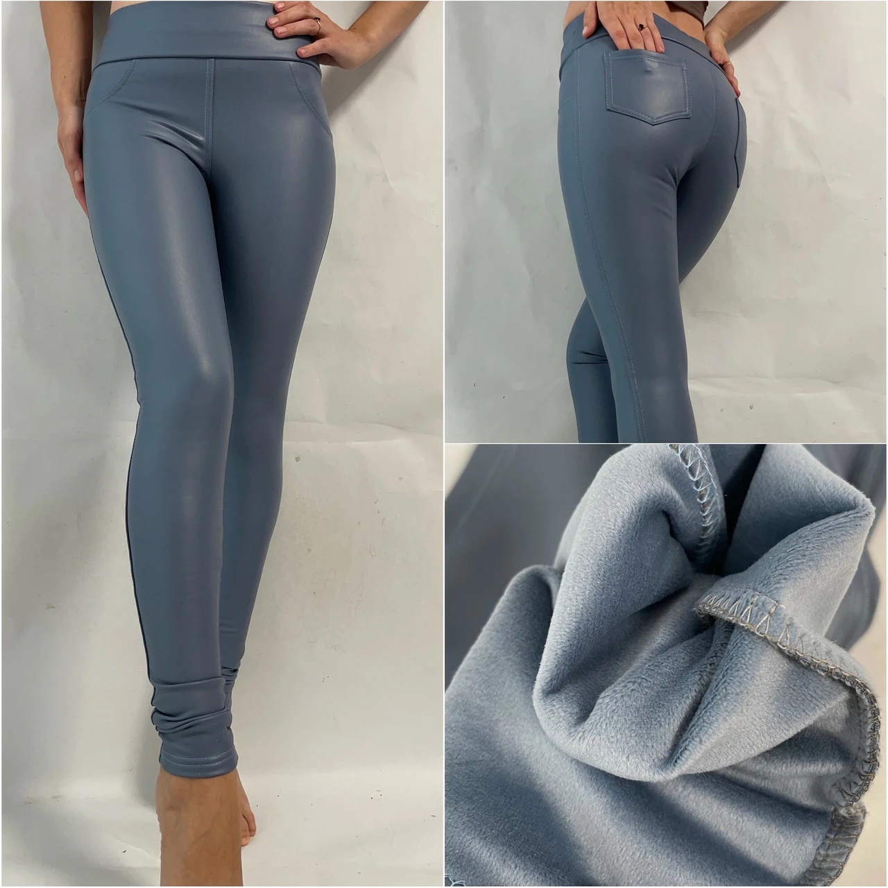 ТЕПЛЫЕ лосины из эко-кожи №085 серо-голубой (батал)