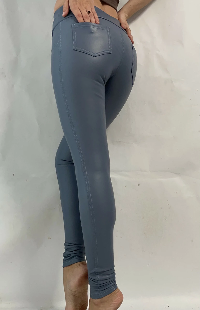 ТЕПЛЫЕ лосины из эко-кожи №085 серо-голубой (батал)