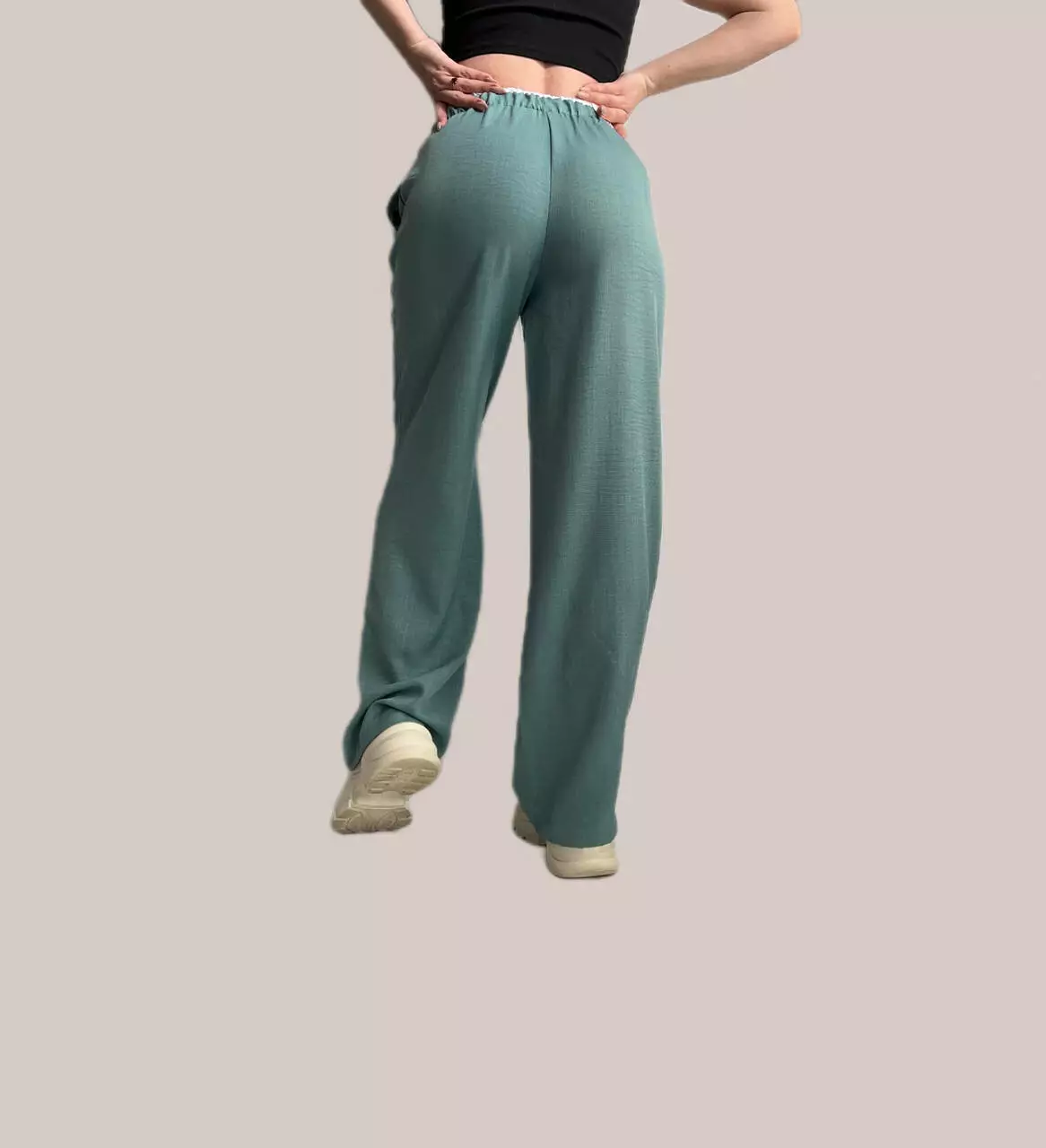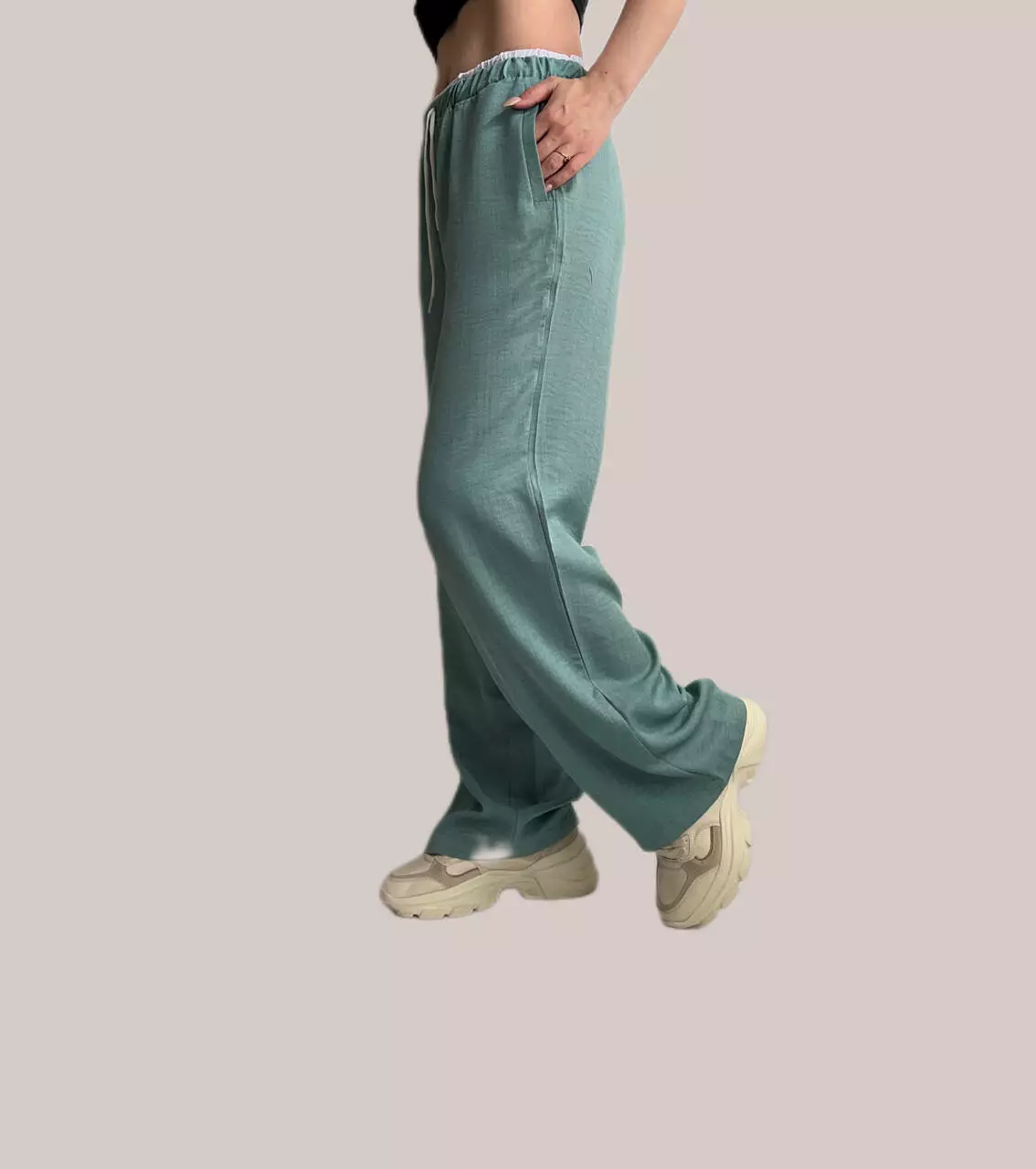 Трендові літні брюки-палаццо з імітацією білизни, виконані з високоякісної тканини льон-коттон. Це щільна і в одночас легка тканина тому в цих штанах вас не буде жарко навіть в самий спекотний день.