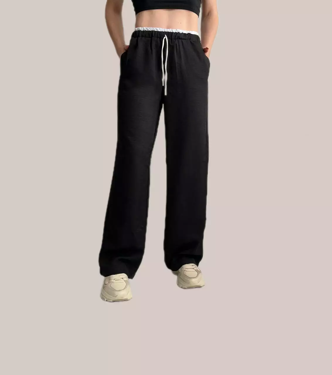 Присутні кишені. Верх на резинці з повноцінним шнурком, що забезпечує комфортну посадку.