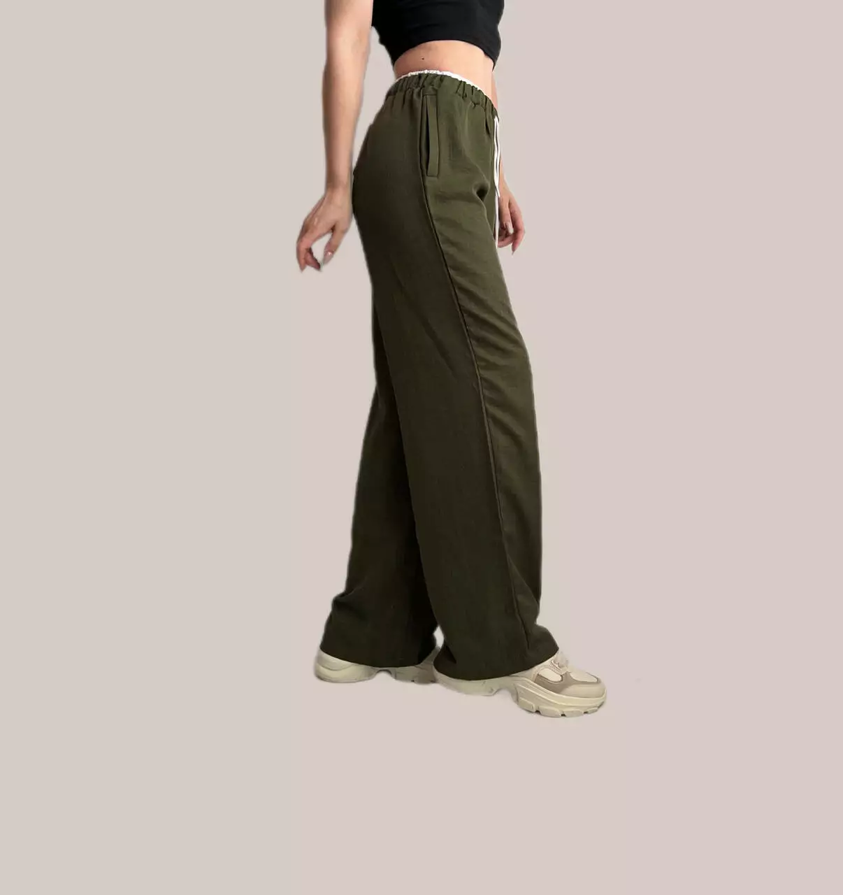 Трендові літні палаццо з акцентною резинкою великих розмірів модель 62 хаки
