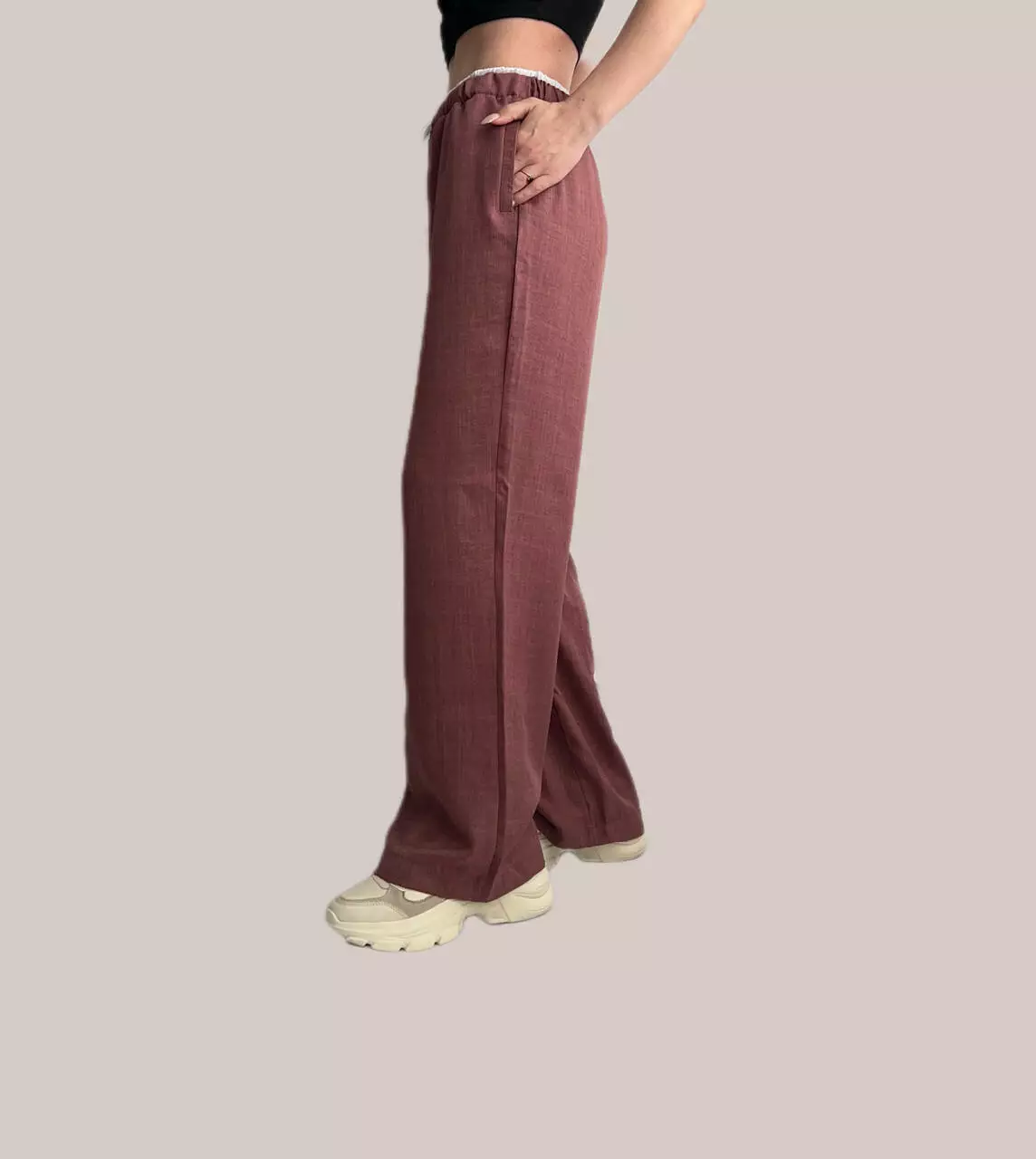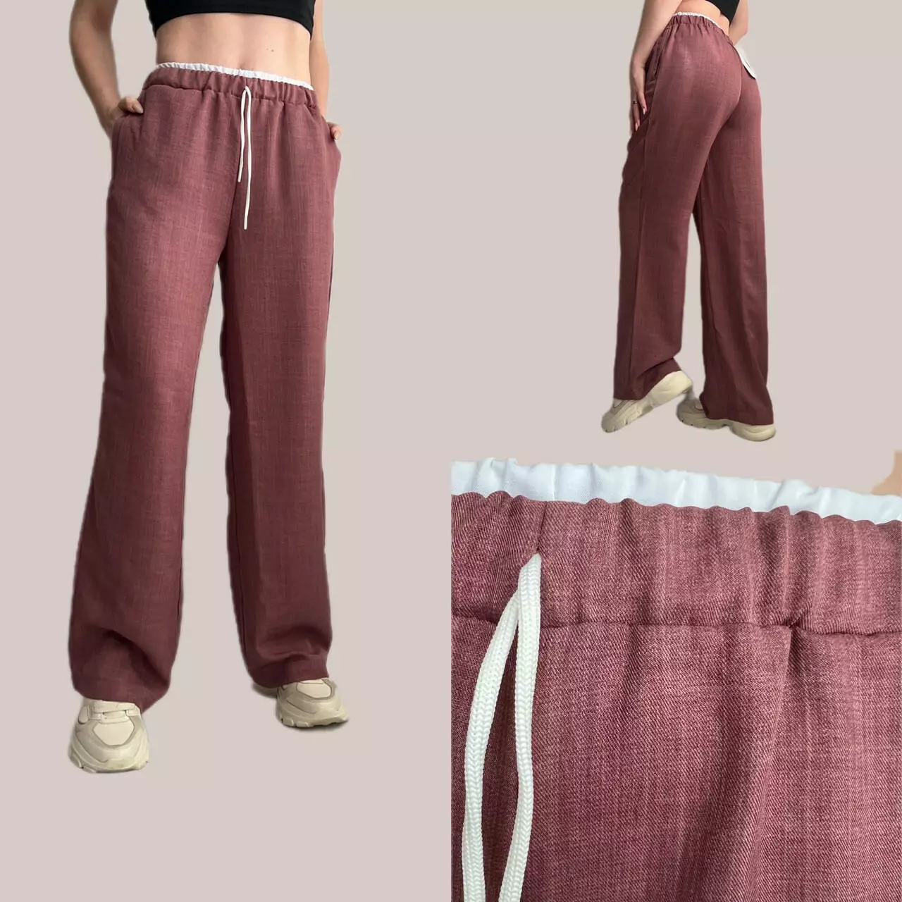 Трендові літні брюки-палаццо з імітацією білизни, виконані з