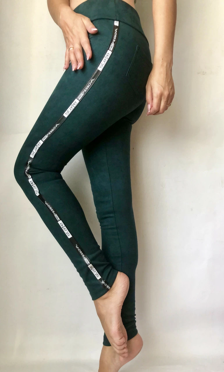 Лосины выполнены из качественного "замша", имеют среднюю посадку на  эластичном и мягком поясе. Они  отлично садятся по фигуре, плотно облегают ноги, не сковывают движения.