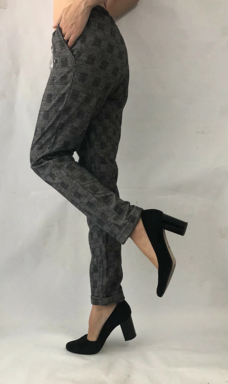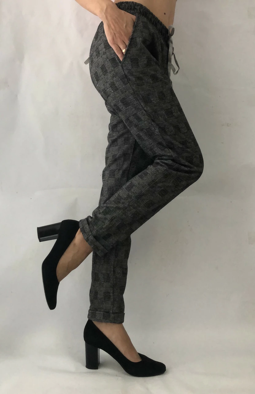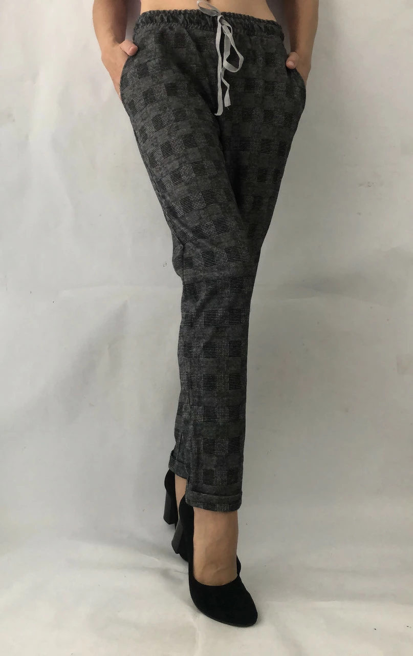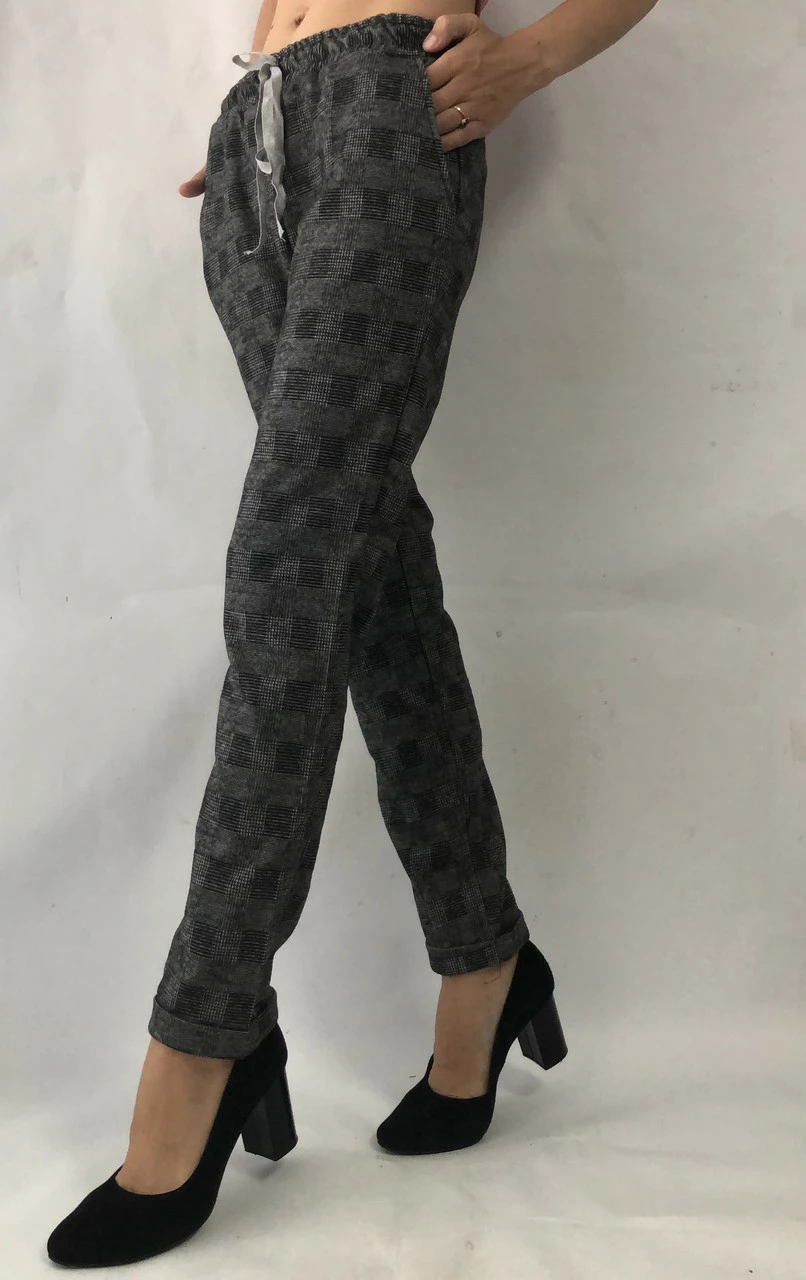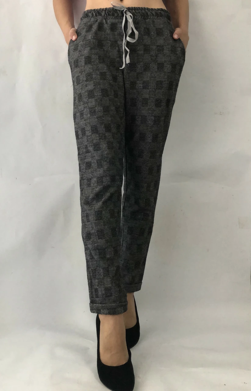 Осенние женские брюки выполнены из качественной ткани "тиар" на резинке + полноценный шнурок. Хорошо ложатся. Присудствуют карманы.