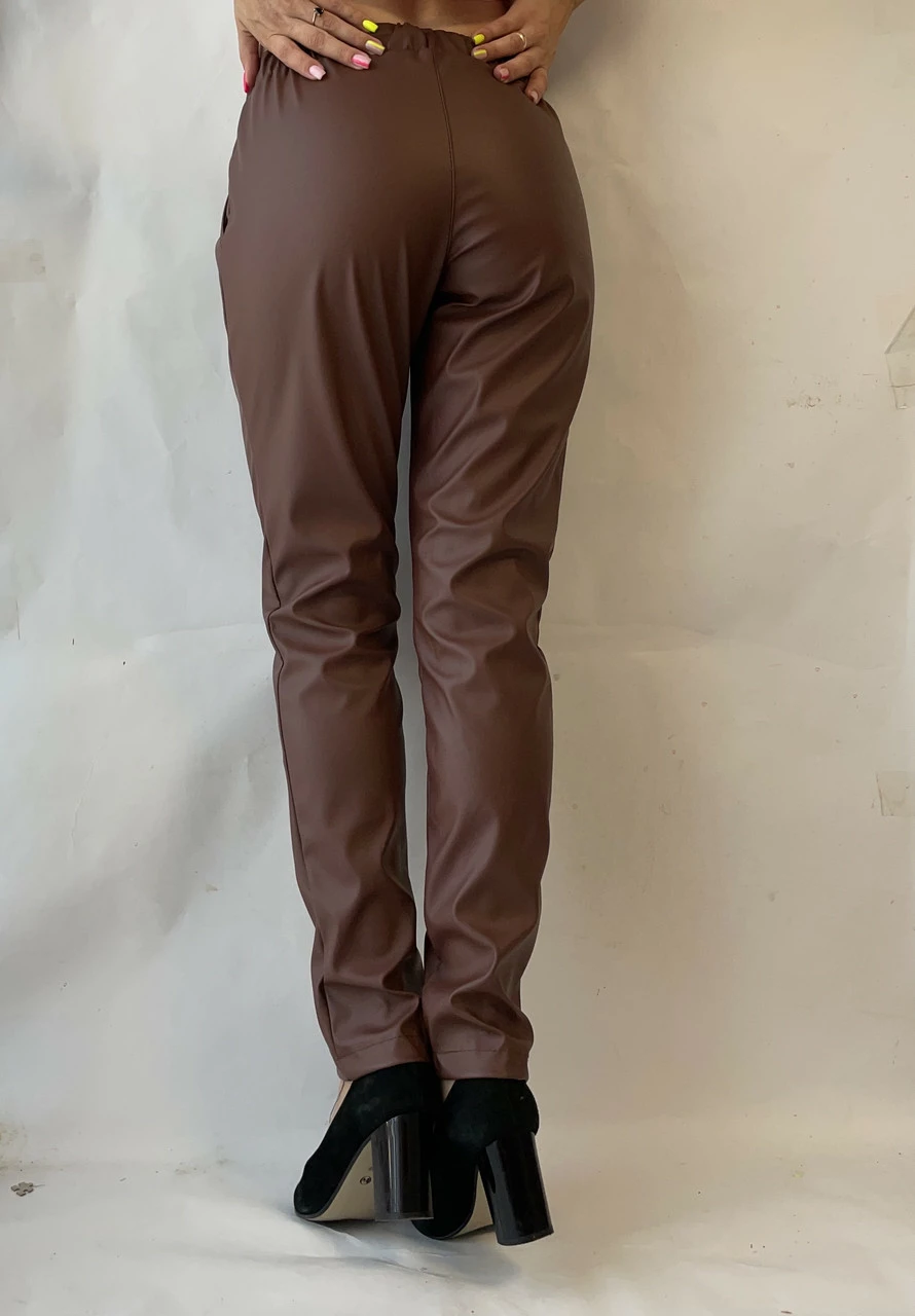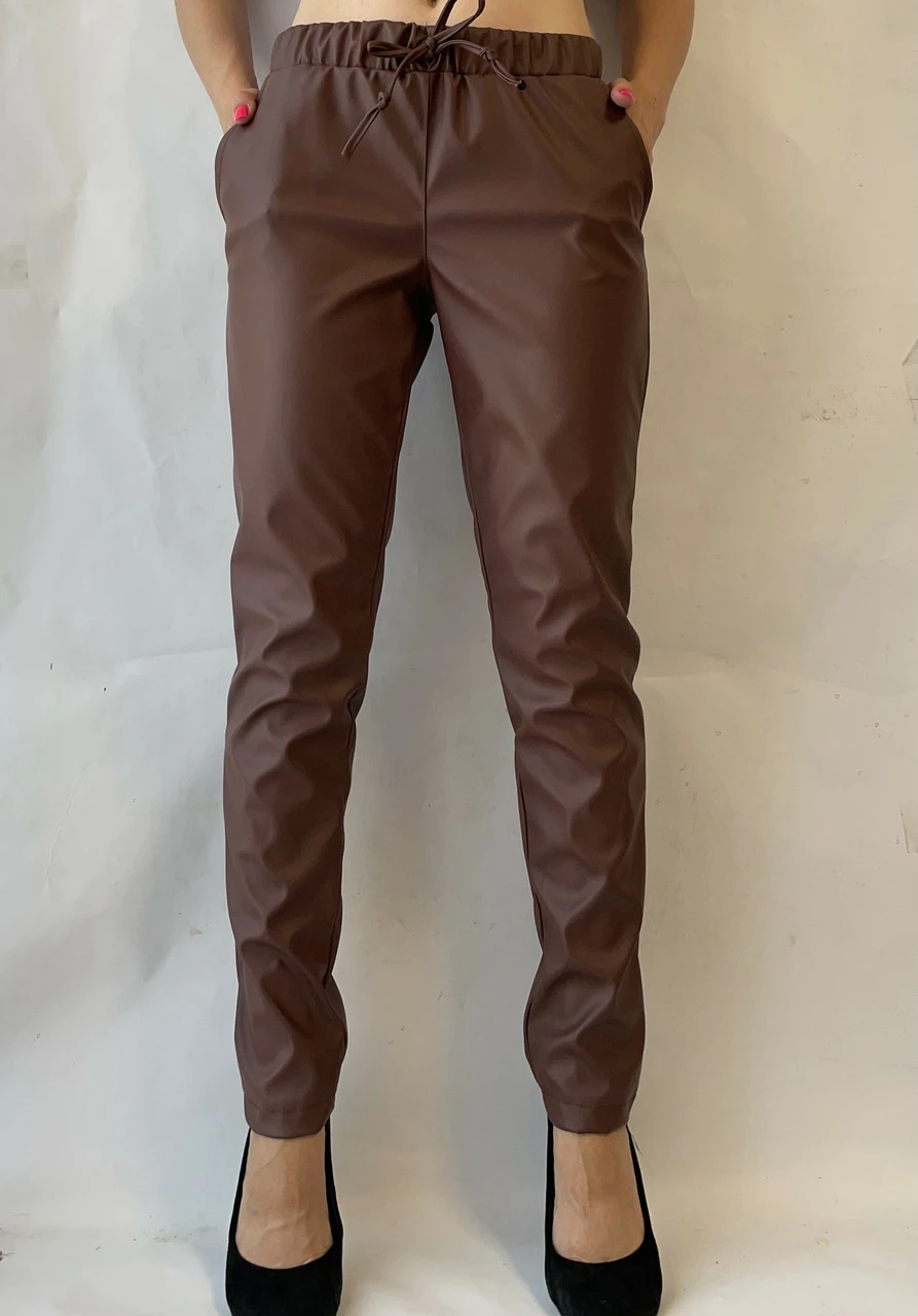 Женские штаны из ЭКО-КОЖИ, №130 темн. коричневый