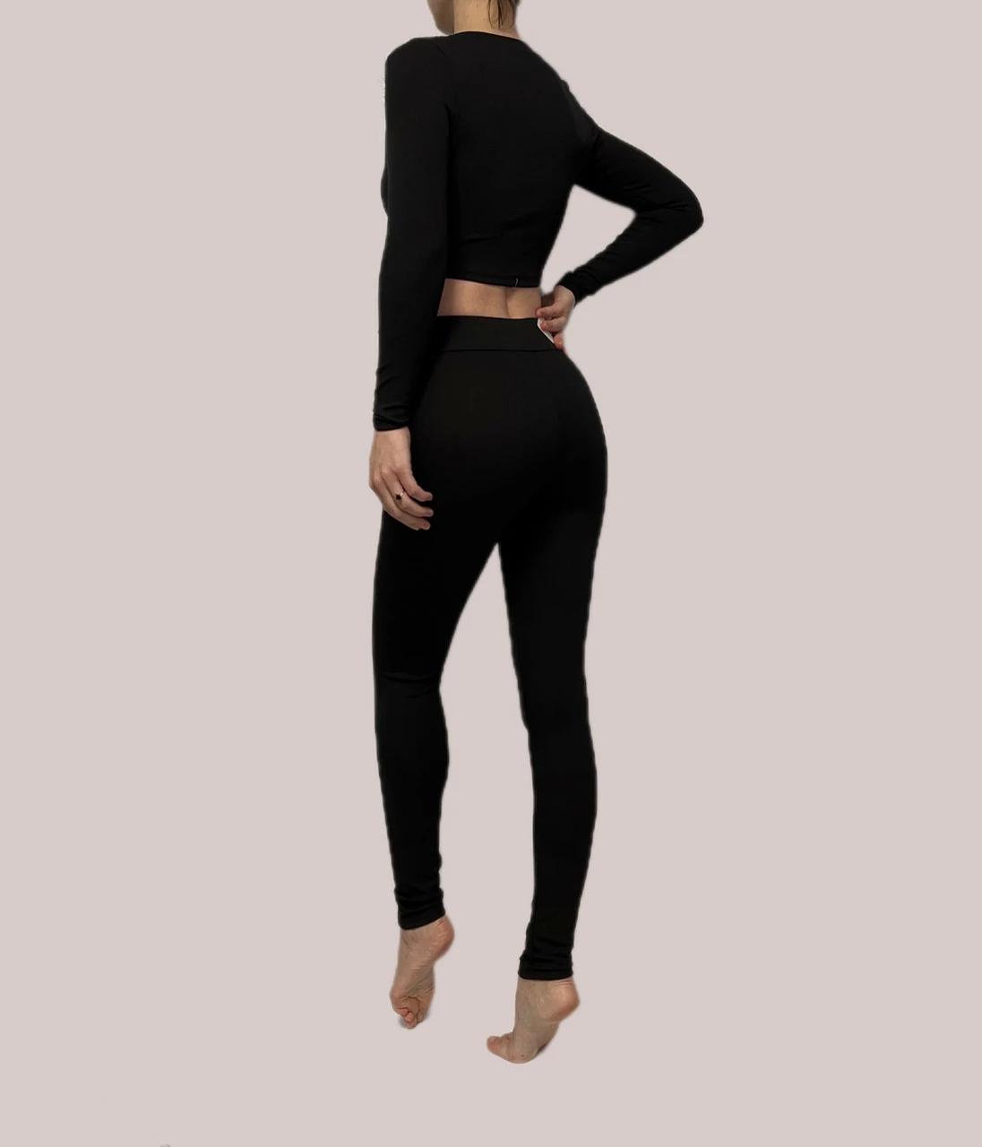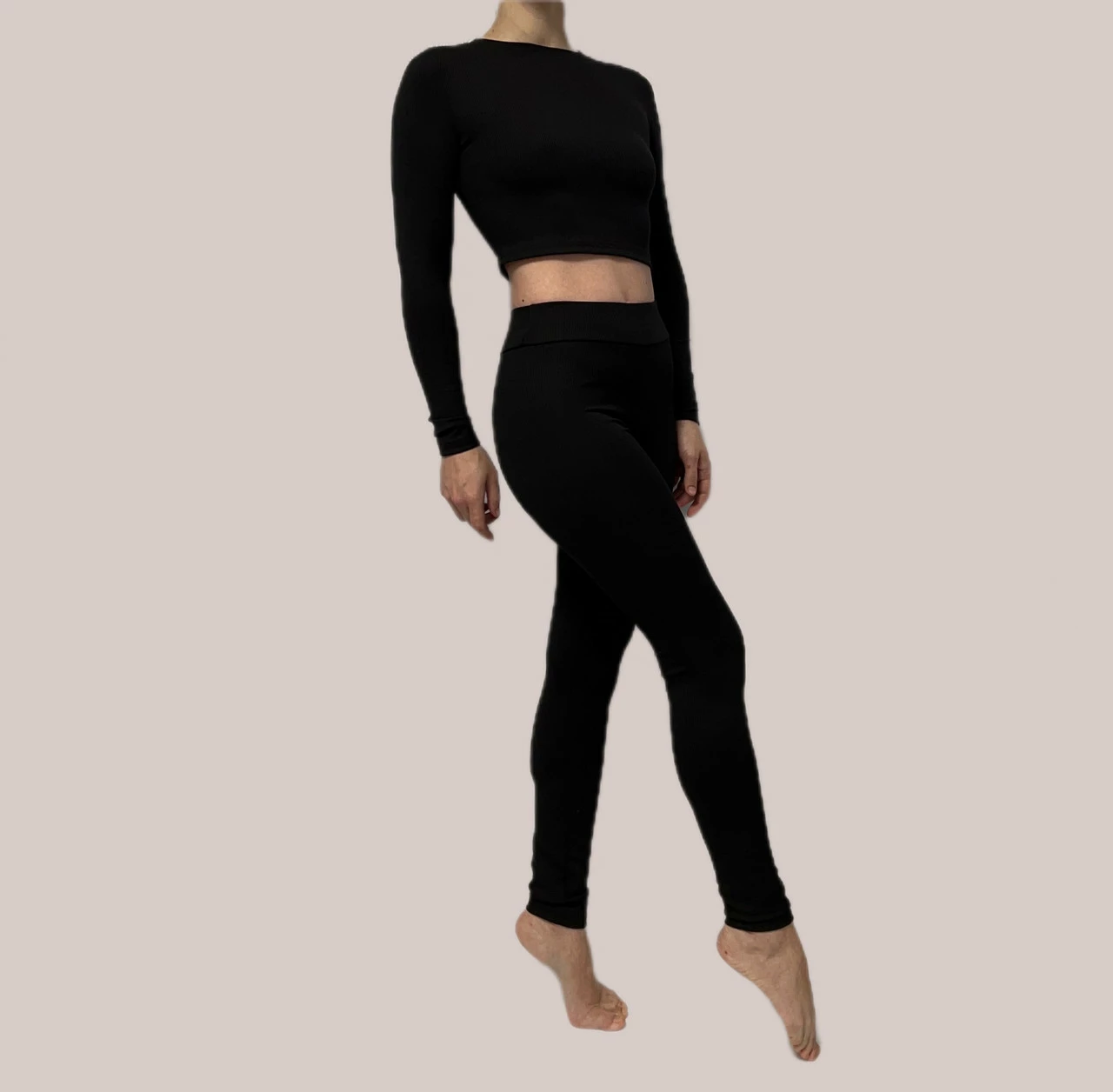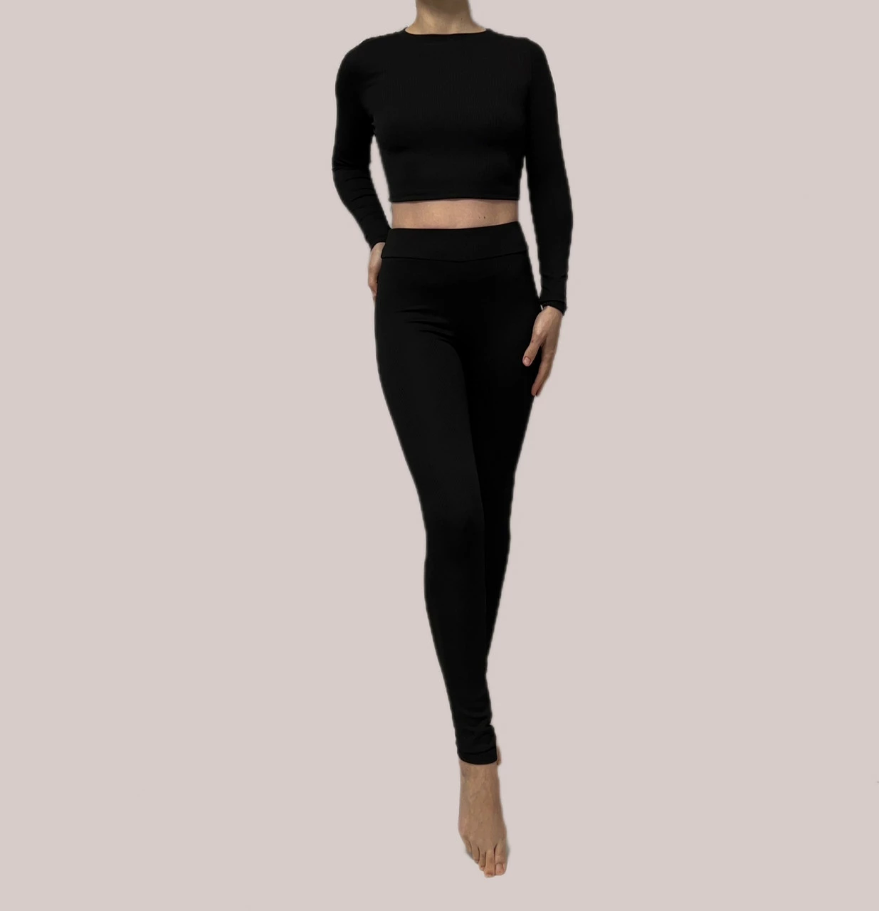 В комплект входять лосини та укорочена кофтинка (топ). Виріб виготовлений з якісної тканини в рубчик, дуже приємний до тіла. Після прання тканина не псується (прати при температурі 30 градусів).